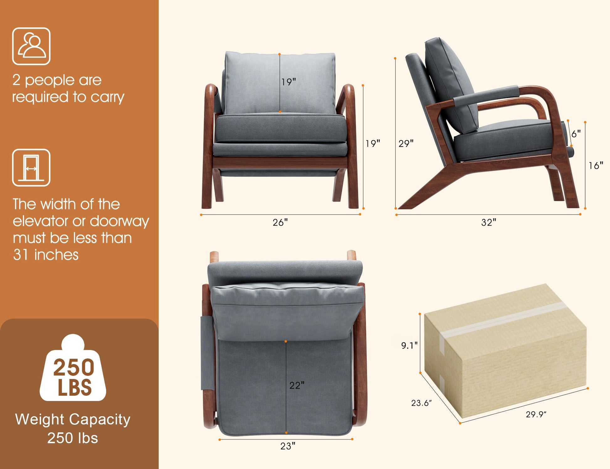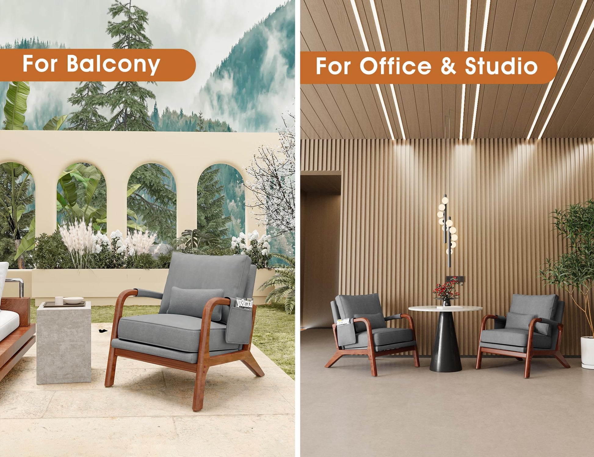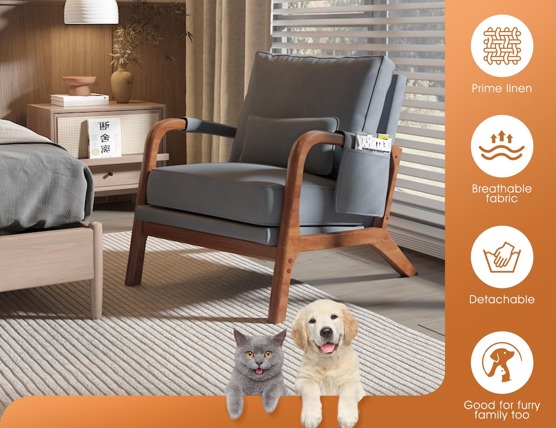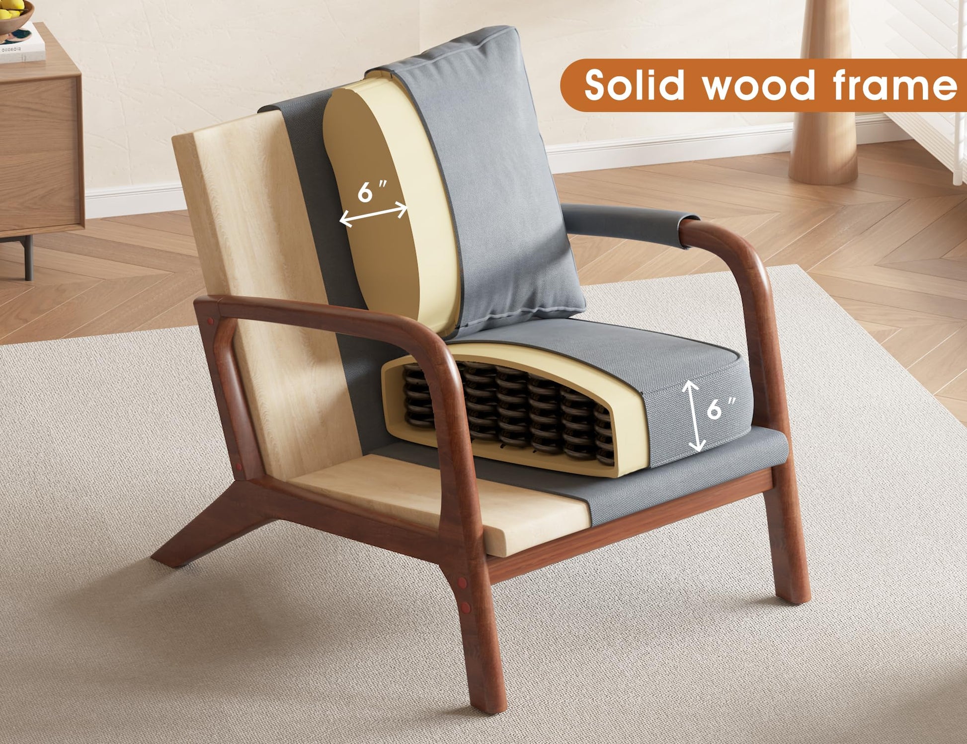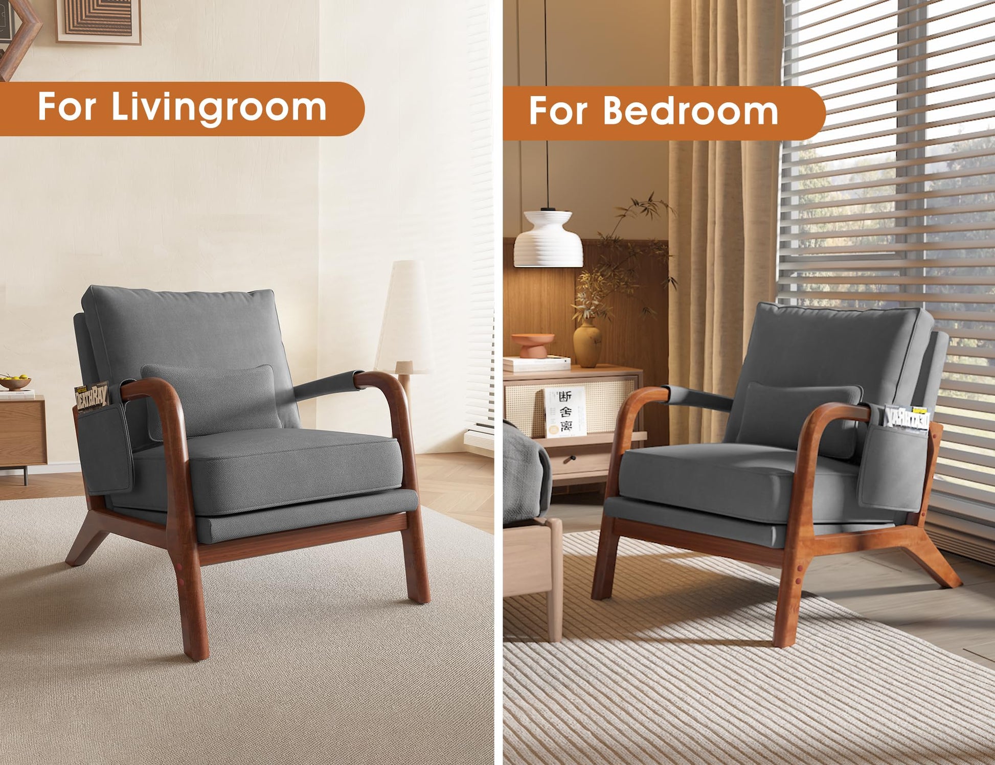 - Mid-Century Modern Style: This armchair brings classic mid-century modern style to your home. The natural wood frame and comfy fabric blend perfectly in living rooms, bedrooms, home offices—even a cozy reading nook