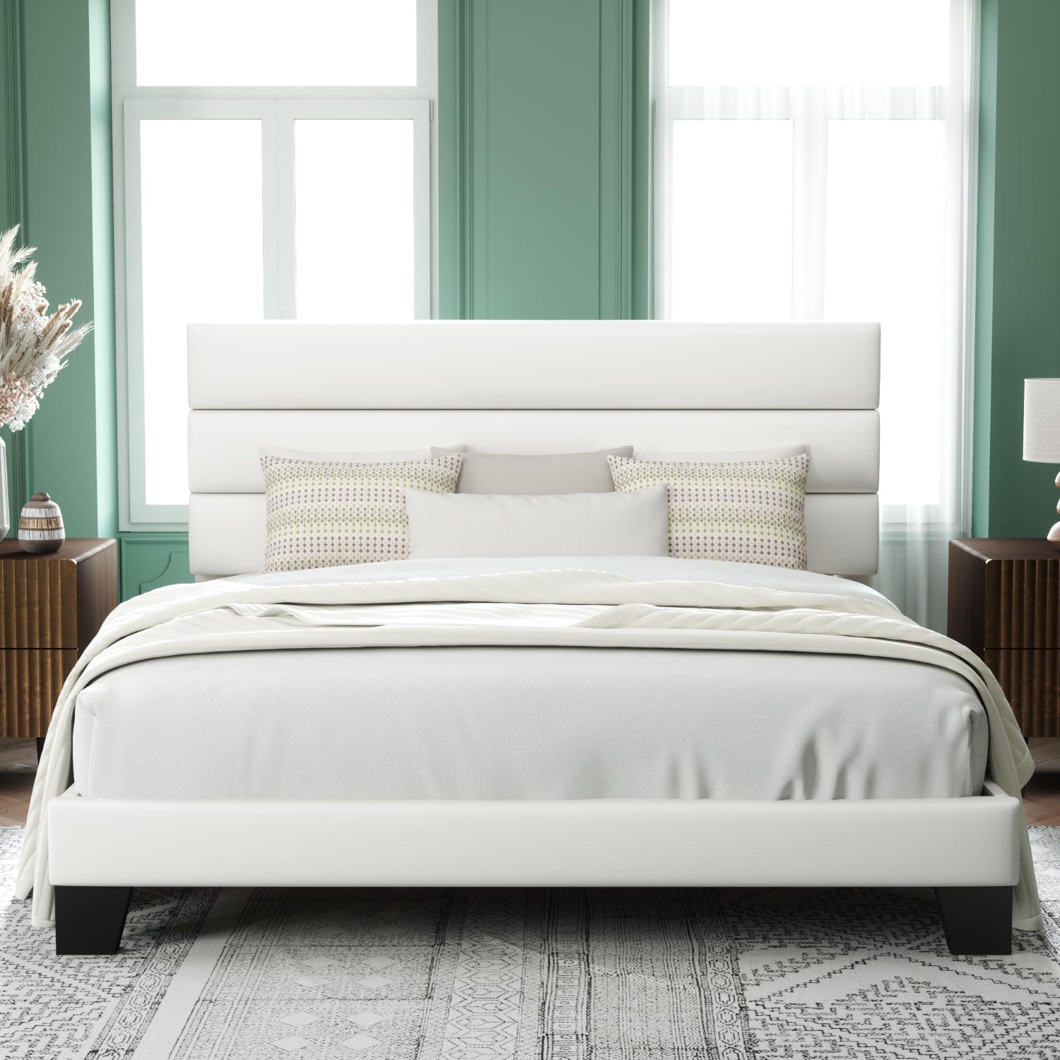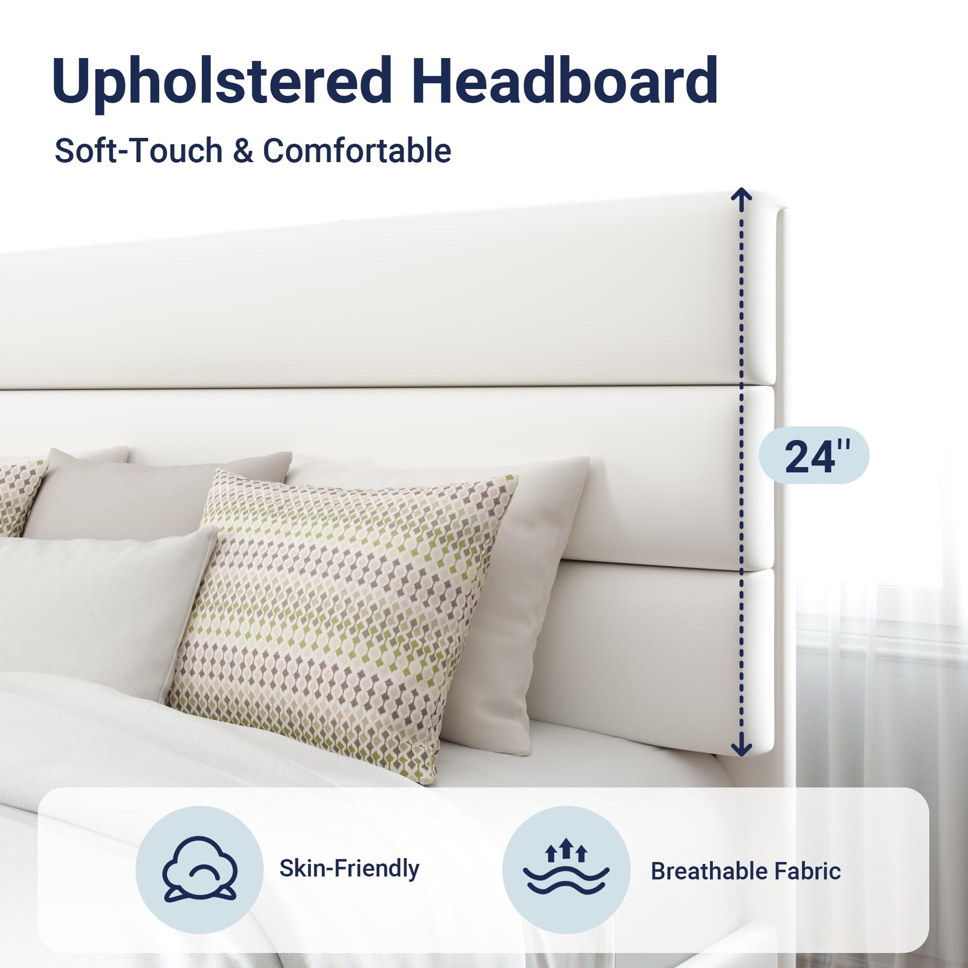 - Minimalist & Noise-Free: King size bed frame with a padded upholstered headboard, suitable for various decors; EVA mute bar prevents noise from friction, no squeaking or creaking
