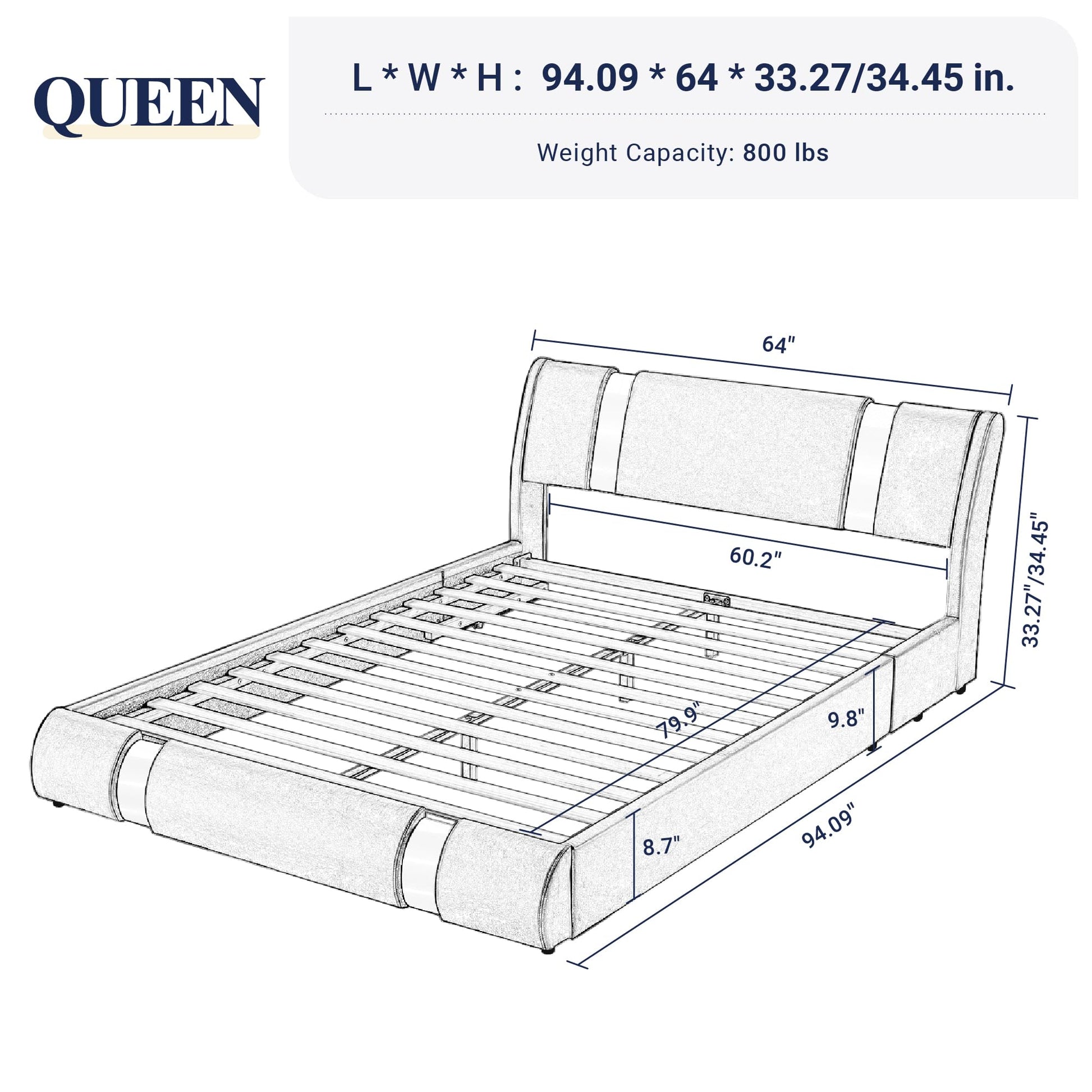 - Adjustable Headboard: The bed's curved headboard is designed for you to lean and read on bed in a more comfortable way. The headboard can be adjusted from 33.5" to 35.4"(Top to ground). 10-12'' mattress recommended