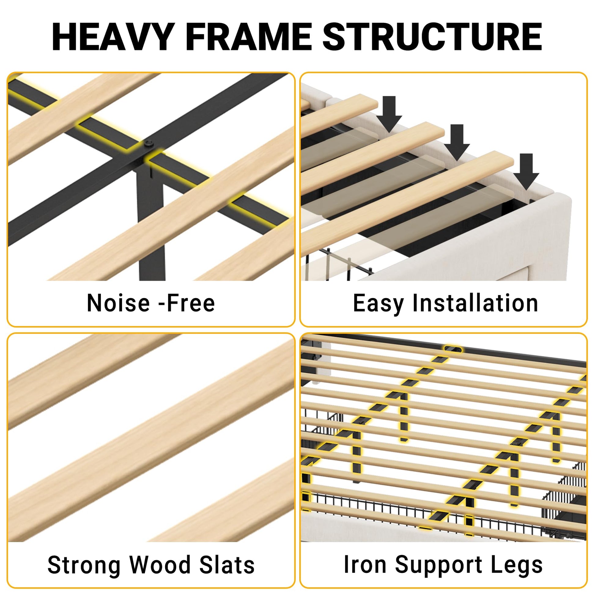 - Comfortable Upholstered Bed Frame: The wider headboard of the bed, filled with high-density sponge inside, soft and breathable, bringing you a comfortable backrest experience. There are small pockets for storage on both sides