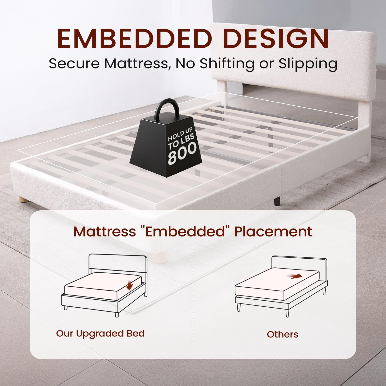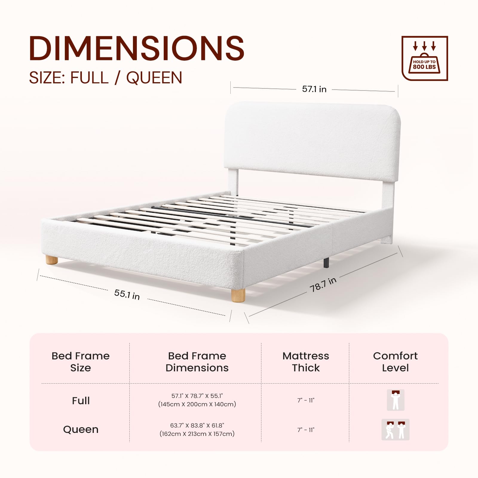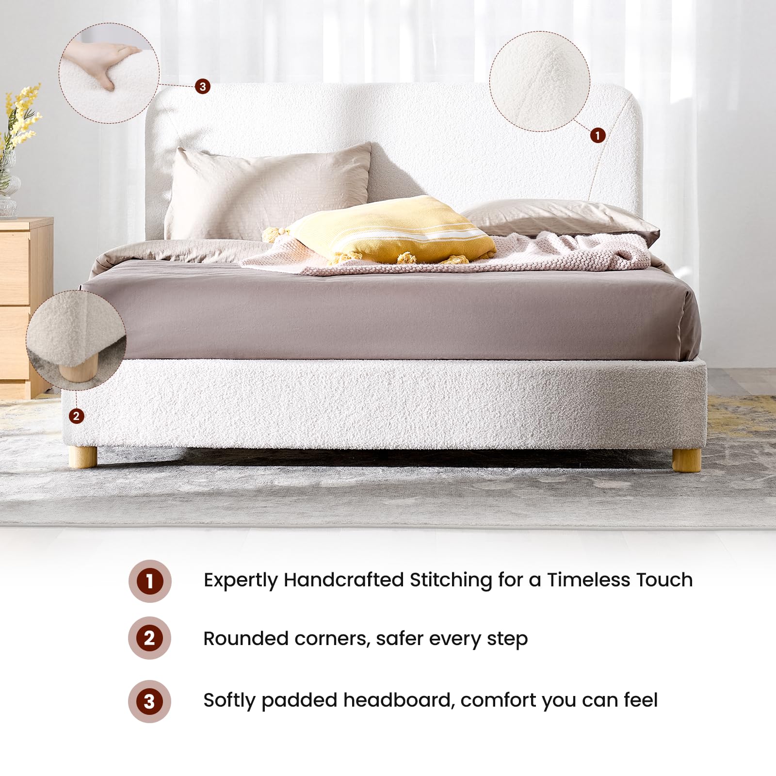 - Quick & Easy Assembly with Clear Instructions: This boucle queen bed frame comes with all necessary tools and easy-to-follow instructions. For quicker and smoother assembly, we recommend two people.