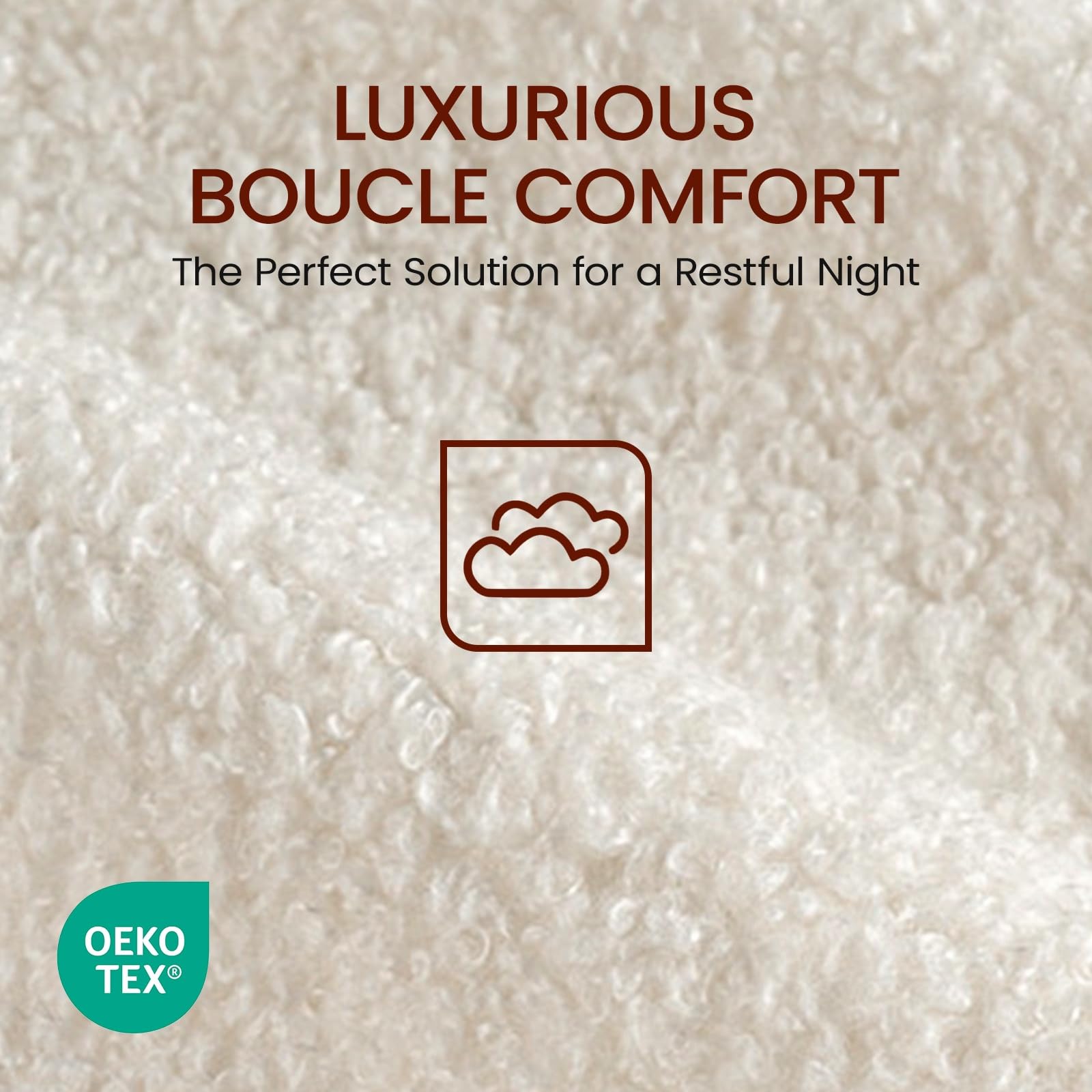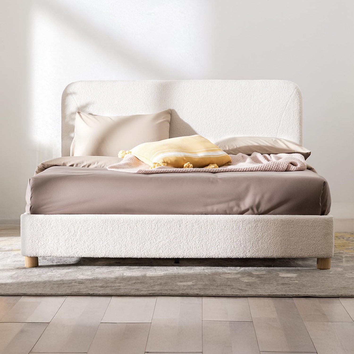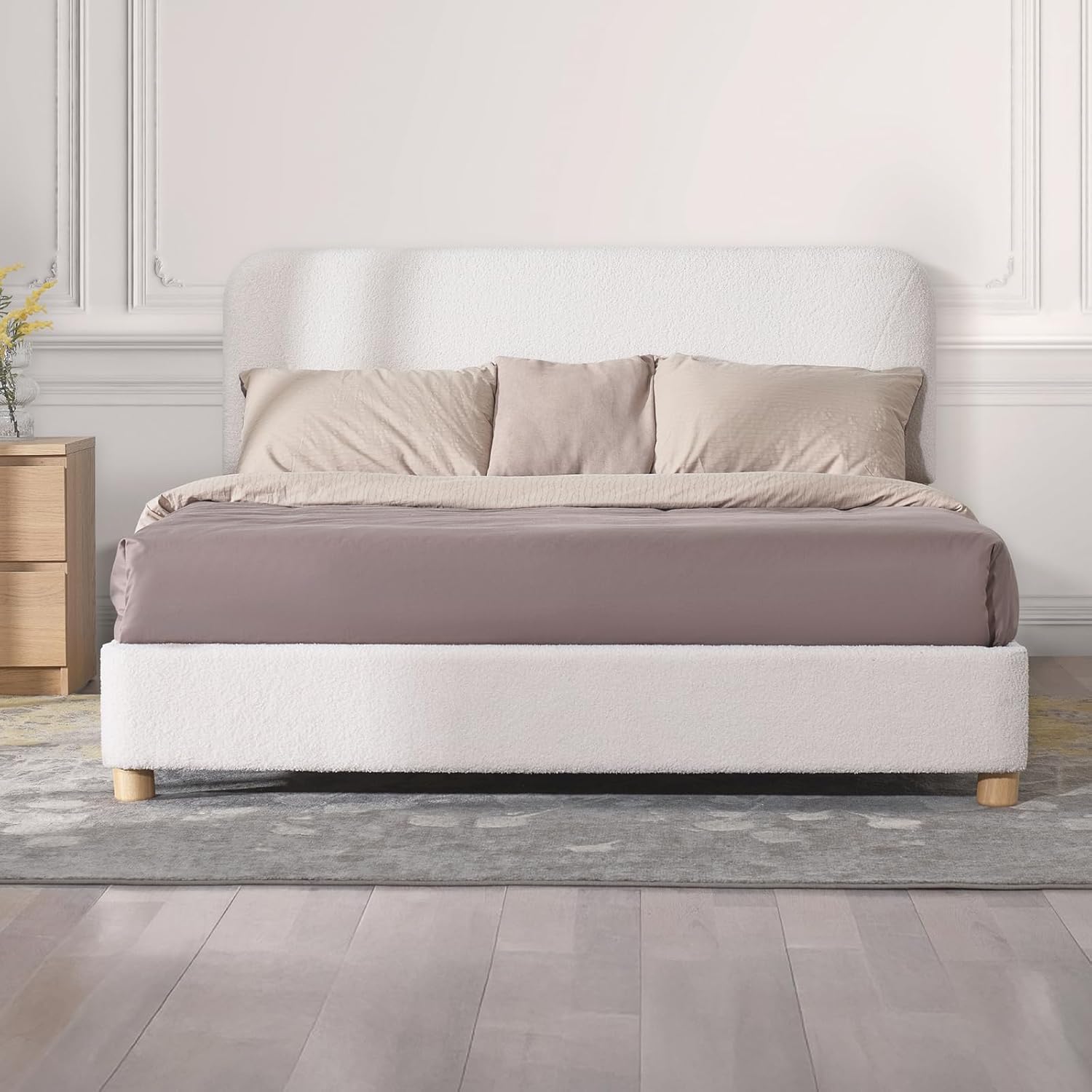 - Luxurious Boucle Fabric for a Cozy, Stylish Touch: Crafted with high-end boucle fabric, this boucle bed frame offers a soft, textured finish that adds a layer of elegance and warmth to any bedroom. It's a perfect blend of modern style and cozy comfort.