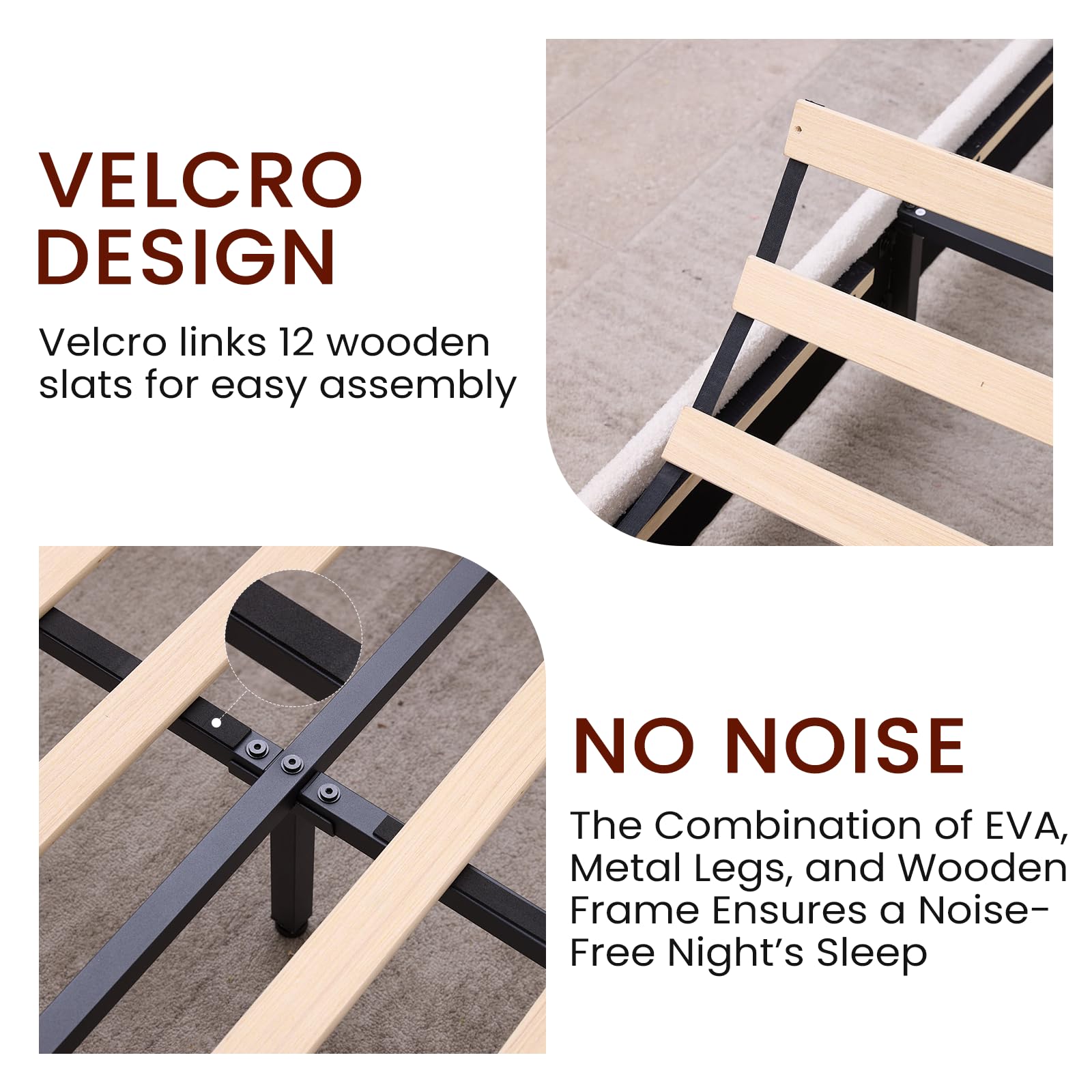 - Designed for Comfort & Safety: This bed frame equipped with noise-reducing foam strips and rounded corners, this bed frame ensures a peaceful sleep and added safety—no more bumps or creaks.