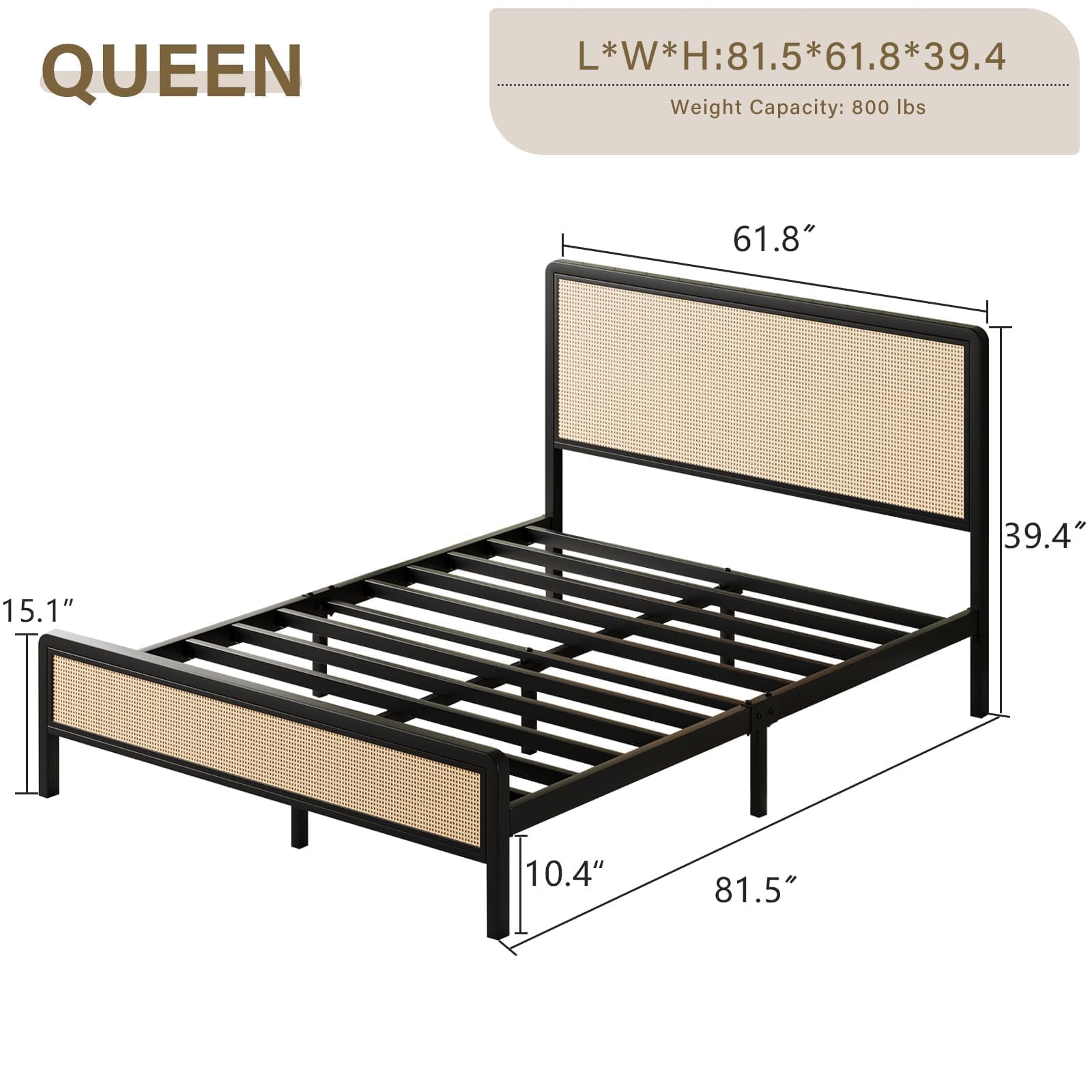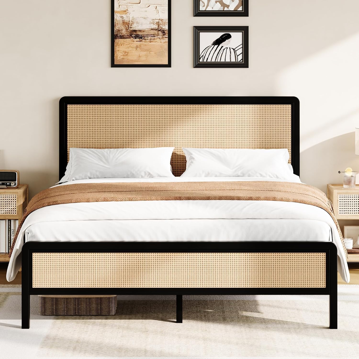 Exquisite Rattan and Metal: The Rattan bed frame queen boasts a distinctive black metal bed frame with an exquisitely woven rattan headboard. It not only offers durability and comfort but also infuses a touch of natural charm, creating a warm and unique atmosphere