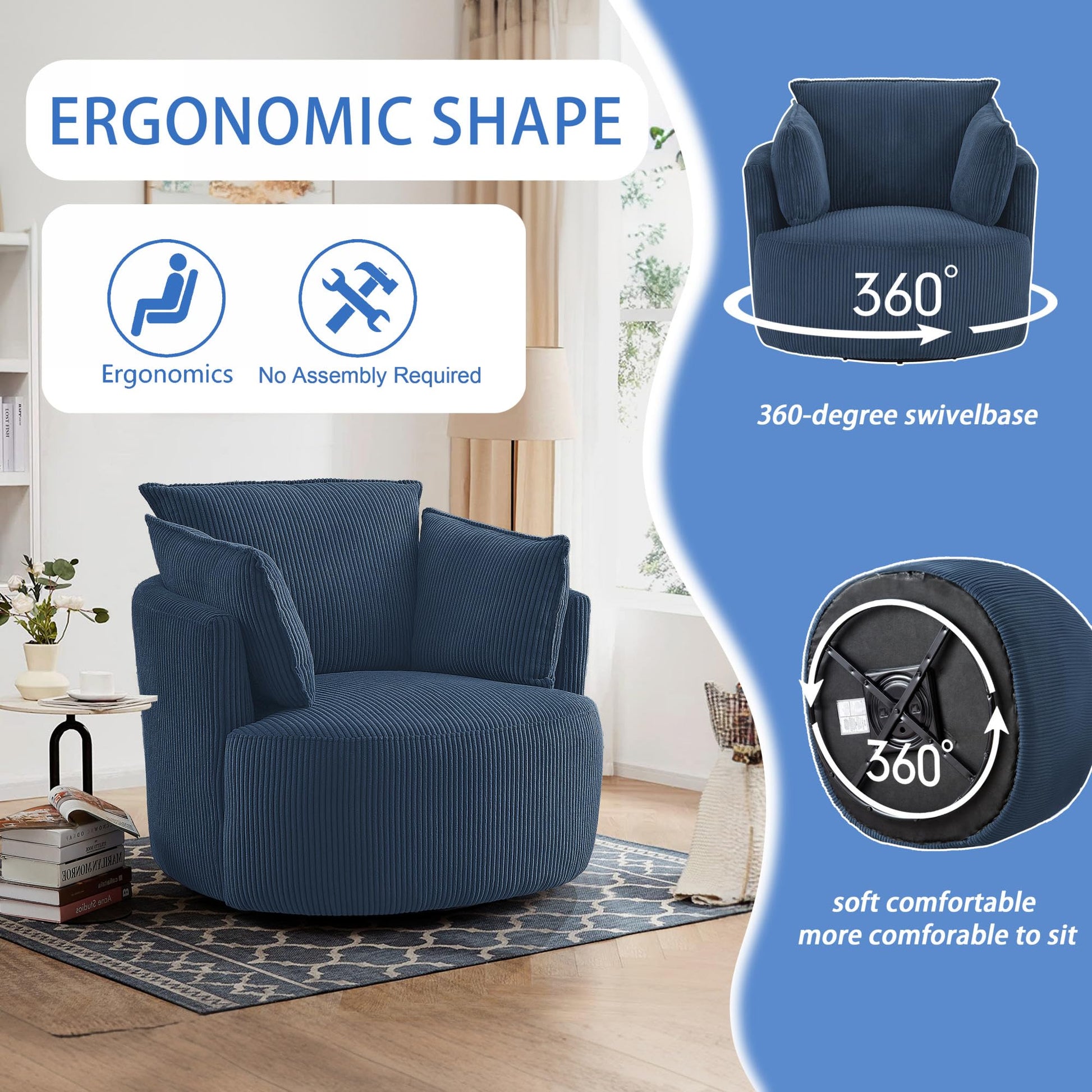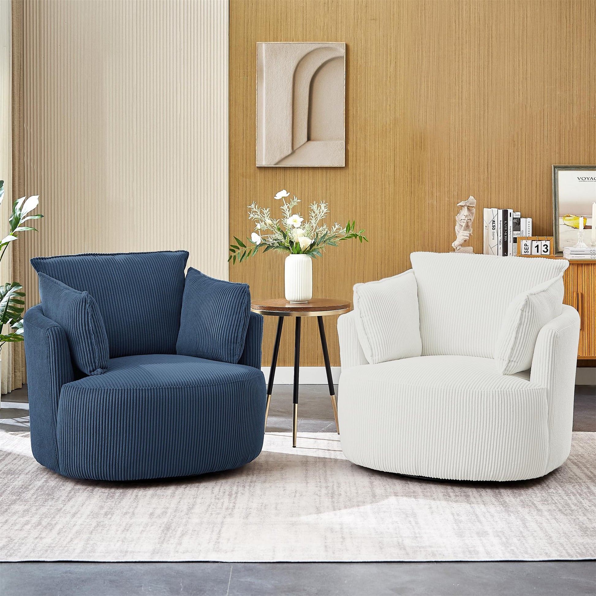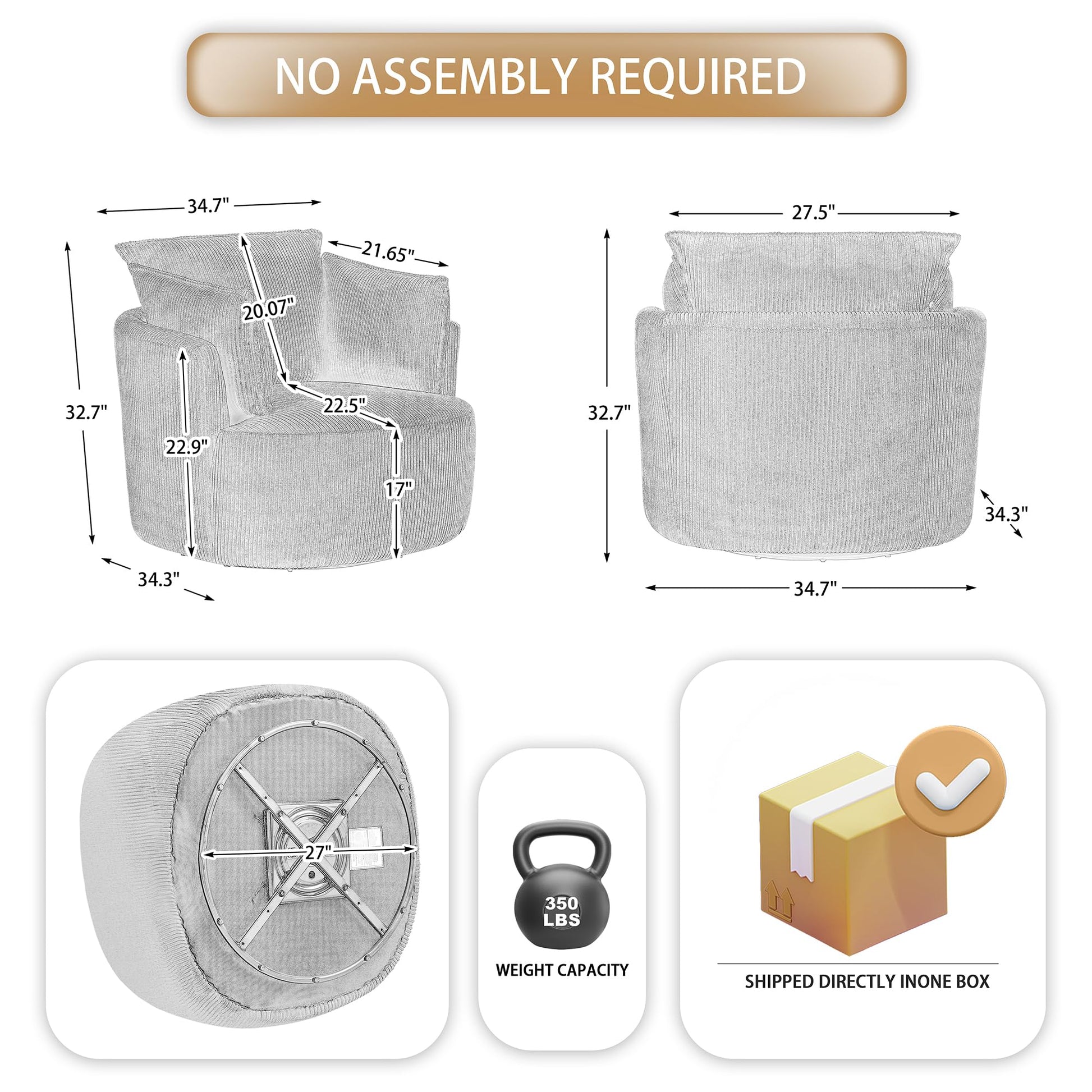 No Assembly Required–Ready to Enjoy:This living room chair arrives fully assembled, so you can start relaxing the moment it arrives. Swivel barrel chair dimensions: 37"*34.25"*33.07".