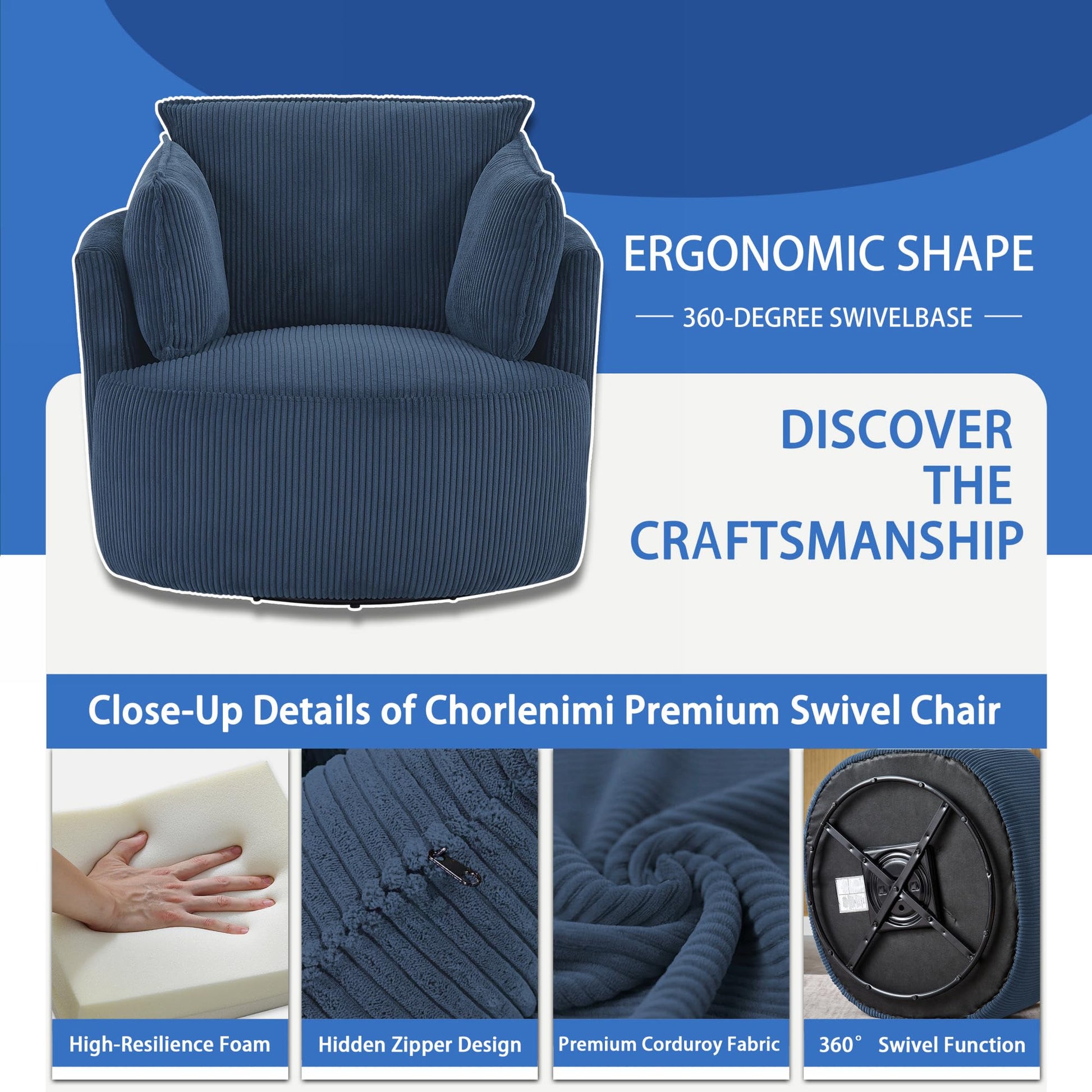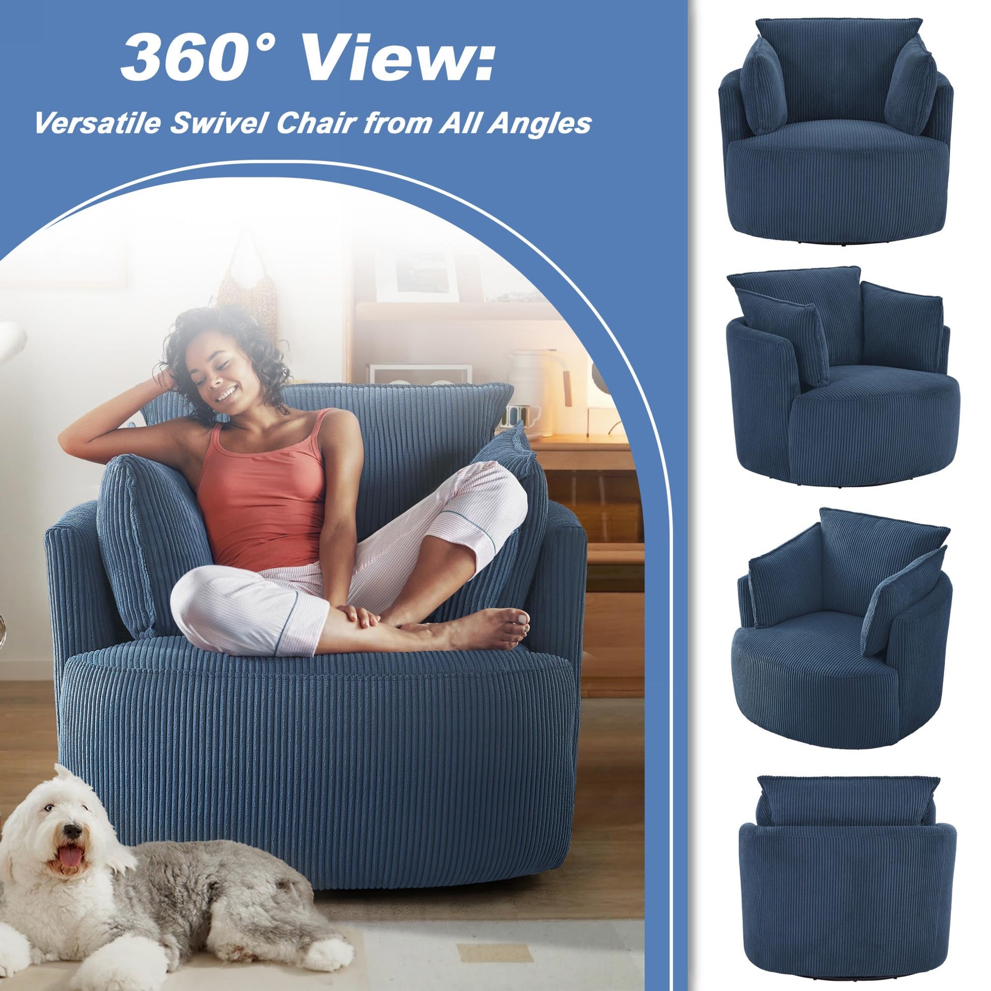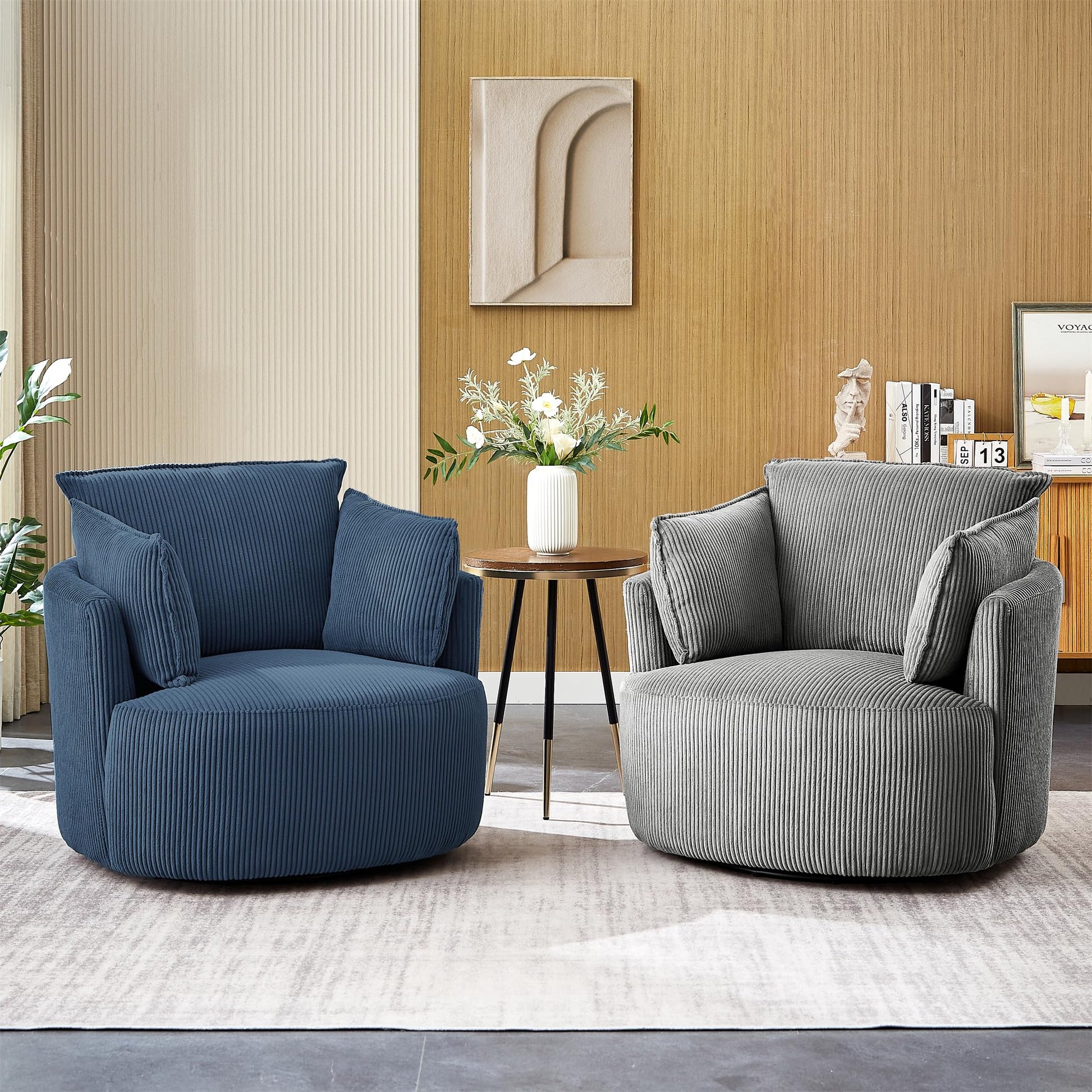 No Assembly Required–Ready to Enjoy:This living room chair arrives fully assembled, so you can start relaxing the moment it arrives. Swivel barrel chair dimensions: 37"*34.25"*33.07".