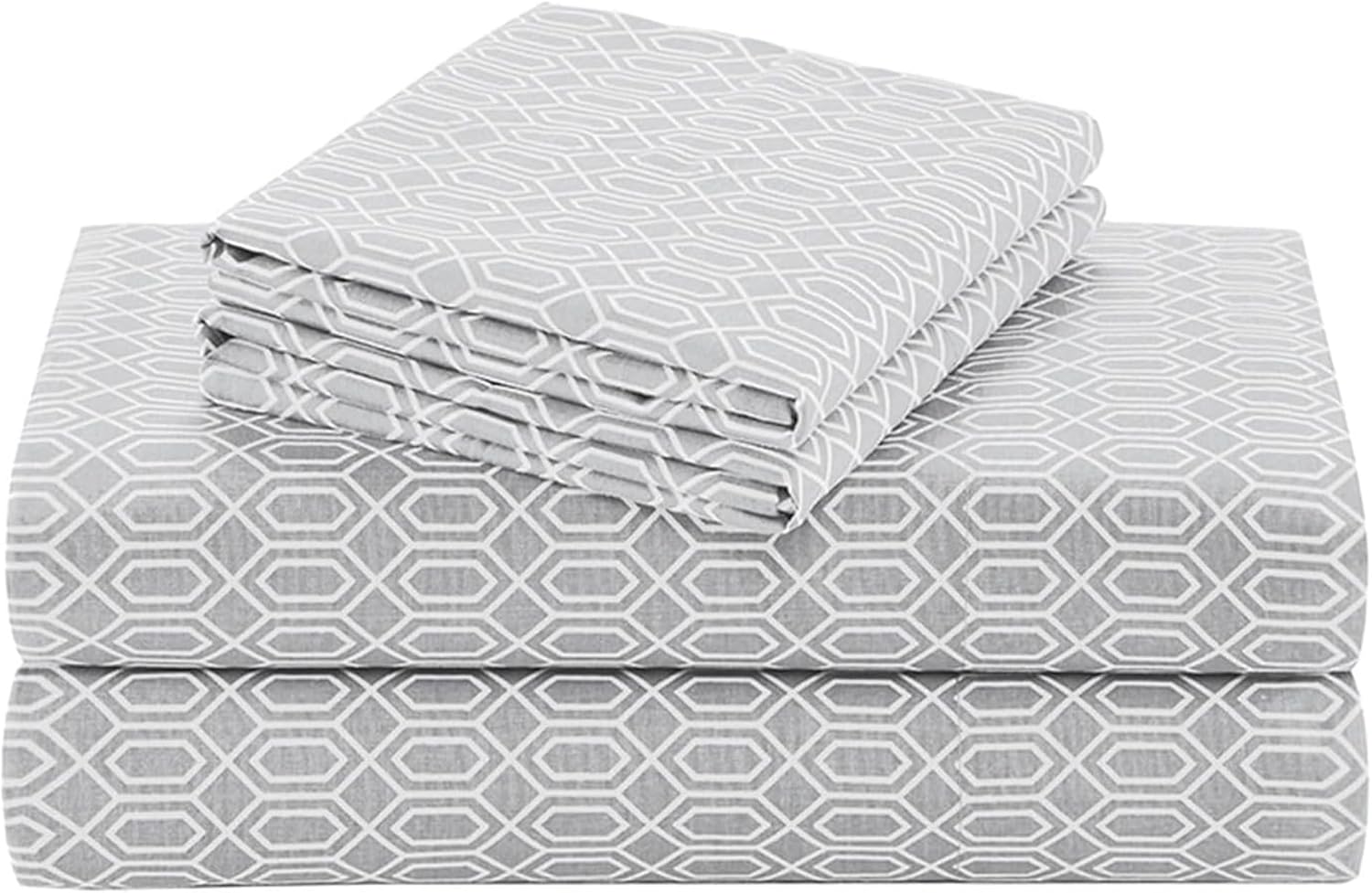 Details: COTTON PRINTED SHEET SET - Sleep in style with the Comfort Spaces Diamond Cotton Printed Sheet Set. This cotton sheet set features a Diamond printcreating an elegant look. Soft and comfythe deep pocket fitted sheet fits mattresses up to 16-inches deep. Made with 144 thread count cottonthis sheet set is machine washable for easy care. Set includes: 1 Flat Sheet1 Fitted Sheetand 1 Pillowcase. SERVICE - If you don't absolutely love this productreturn it within 30 days for a full refund. We'll work with you to resolve any issue and ensure that you're satisfied with your experience.