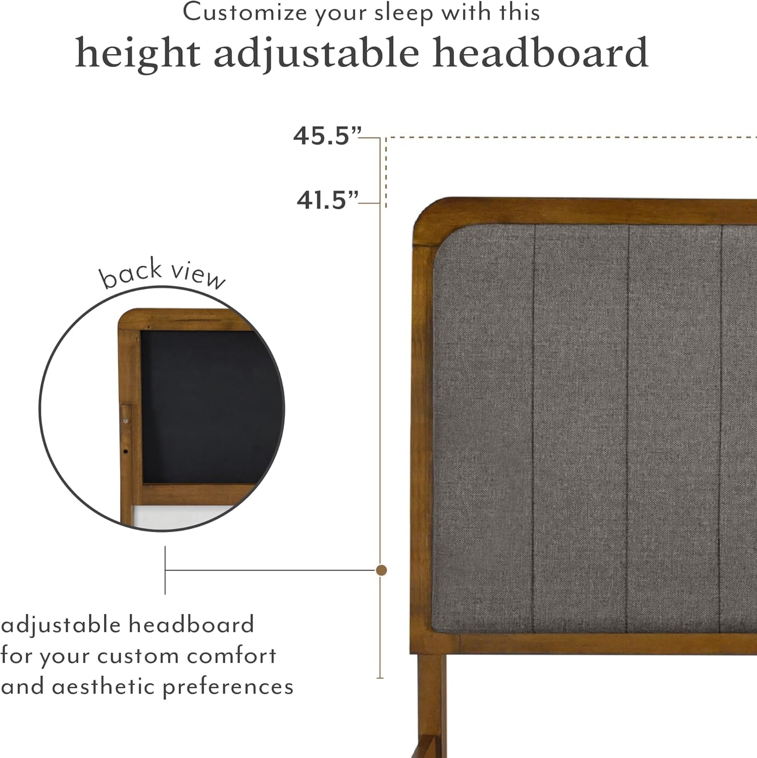 Walnut Finish Platform Bed with Tufted Upholstered Adjustable Height Headboard