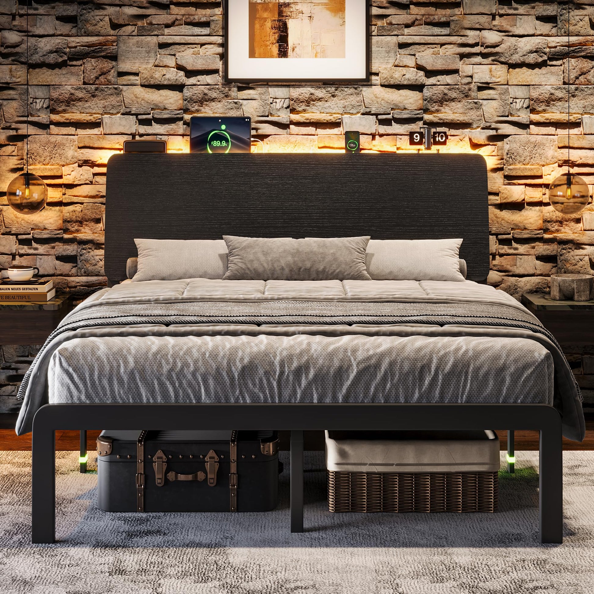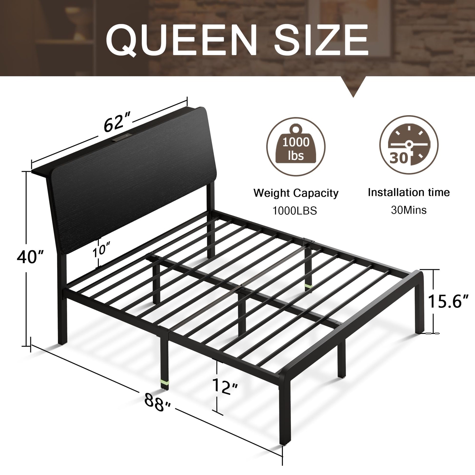 - Charging Station & Hidden Storage Shelf: This metal bed frame with USB ports includes 2 AC outlets, 1 USB-A and 1 Type-C port—ideal for powering phones, tablets, and more. Behind the headboard, a concealed 4" storage shelf keeps glasses, books, or remotes within easy reach, adding function to style