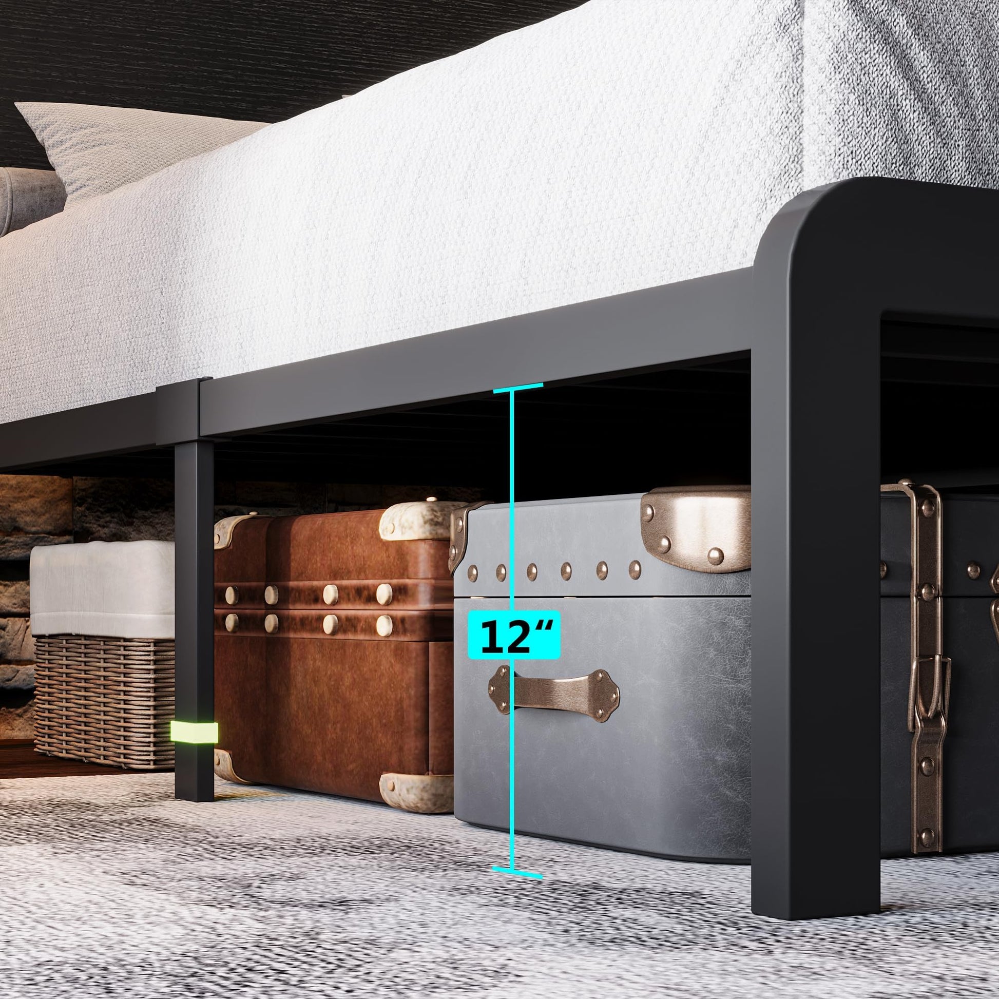 - Built to Last: this metal platform bed frame features 12 steel slats and 9 reinforced legs, supporting up to 1000 lbs with no squeaks or wobbles. Rubber silencers reduce friction noise, while rounded corners and glow-in-the-dark strips offer nighttime safety.