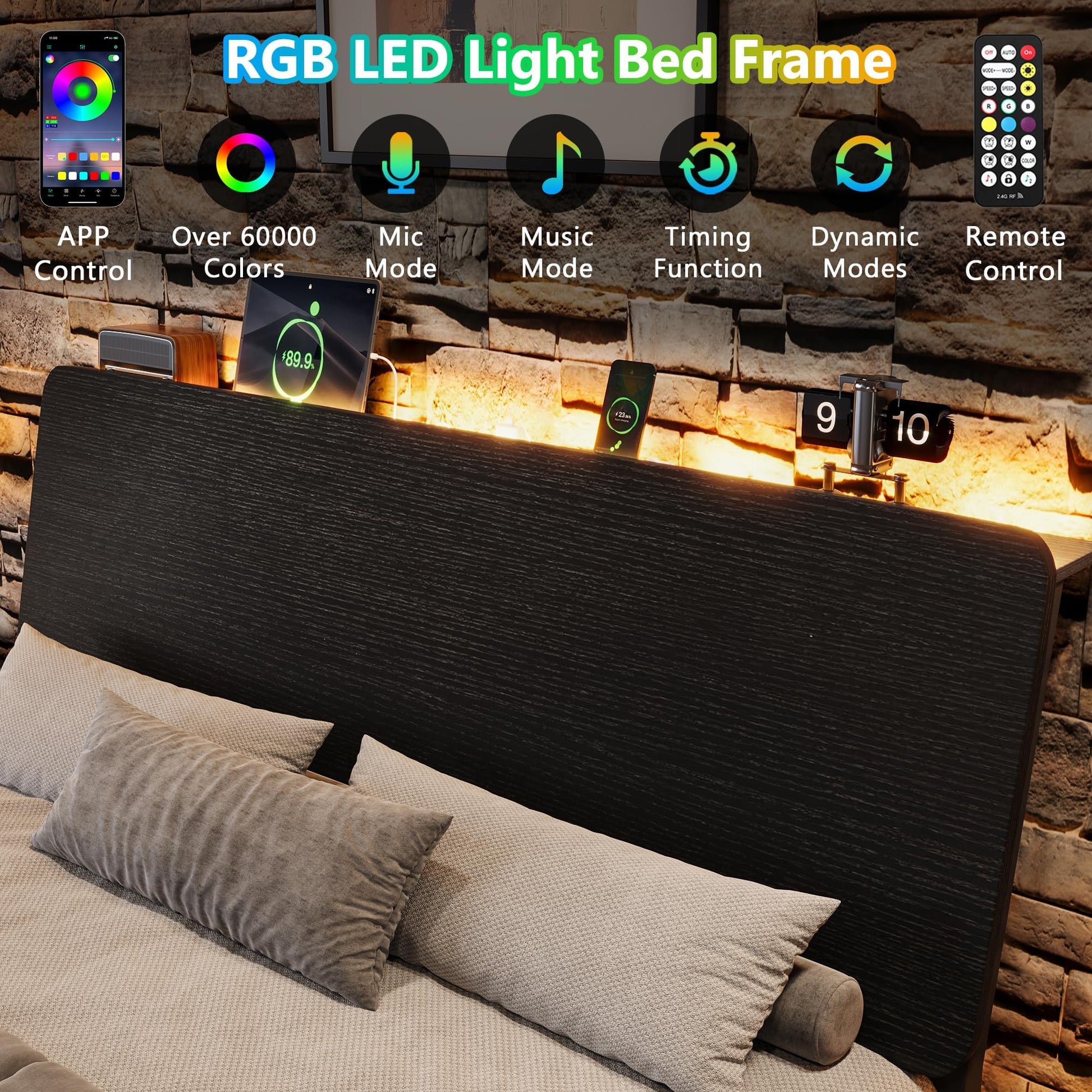 - Customizable RGB LED: Elevate your space with this modern LED bed frame featuring RGB lights that adjust color, brightness, and effects via app or remote. Lights sync to music to create a relaxing or party-ready vibe—perfect for anyone seeking a modern platform bedframe with ambiance lighting
