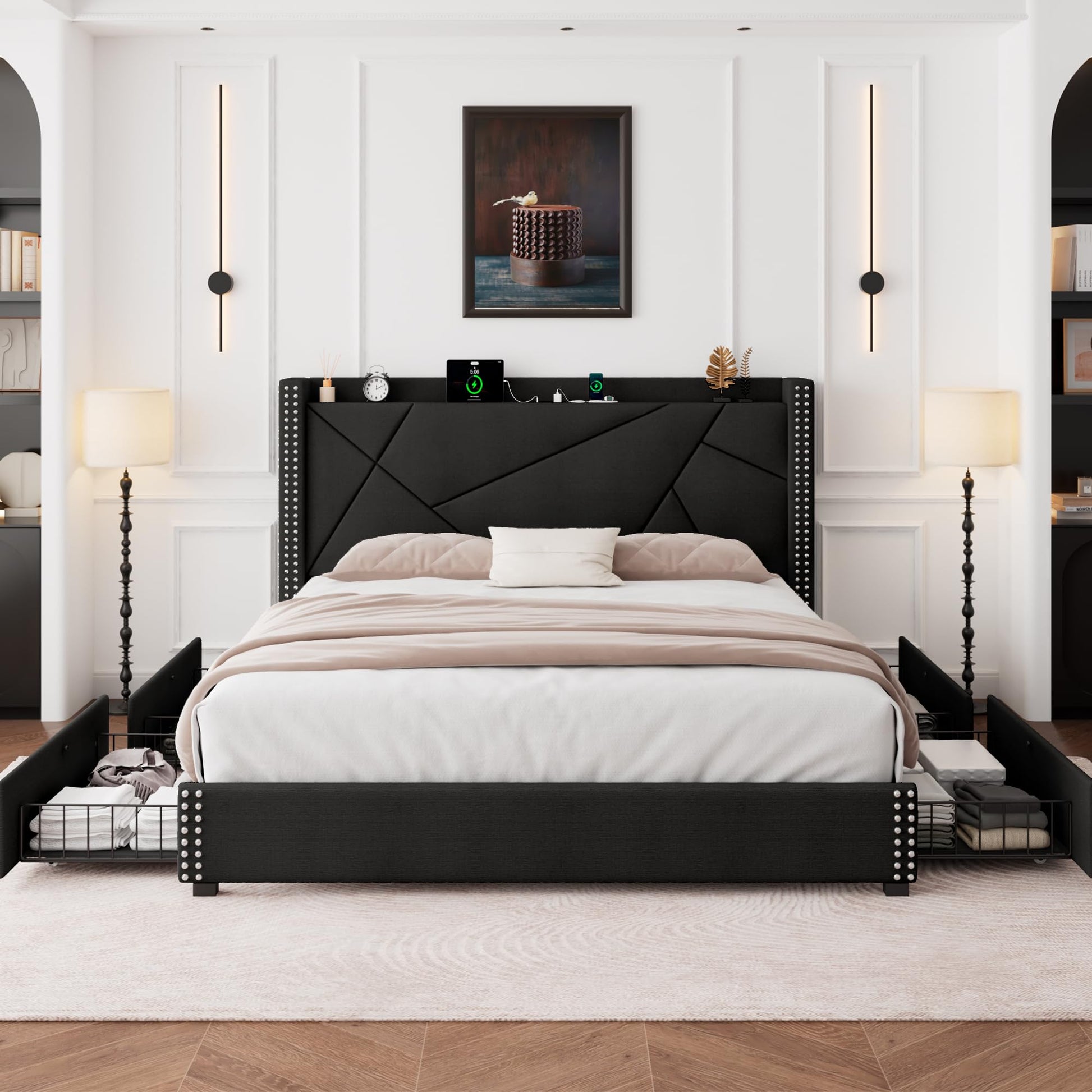 Ample Storage: This full bed frame has 4 drawers with wheels, perfect for storing extra blankets, clothes, toys, or whatever. The lock design keeps the drawer in place and can be easily removed when cleaning the room