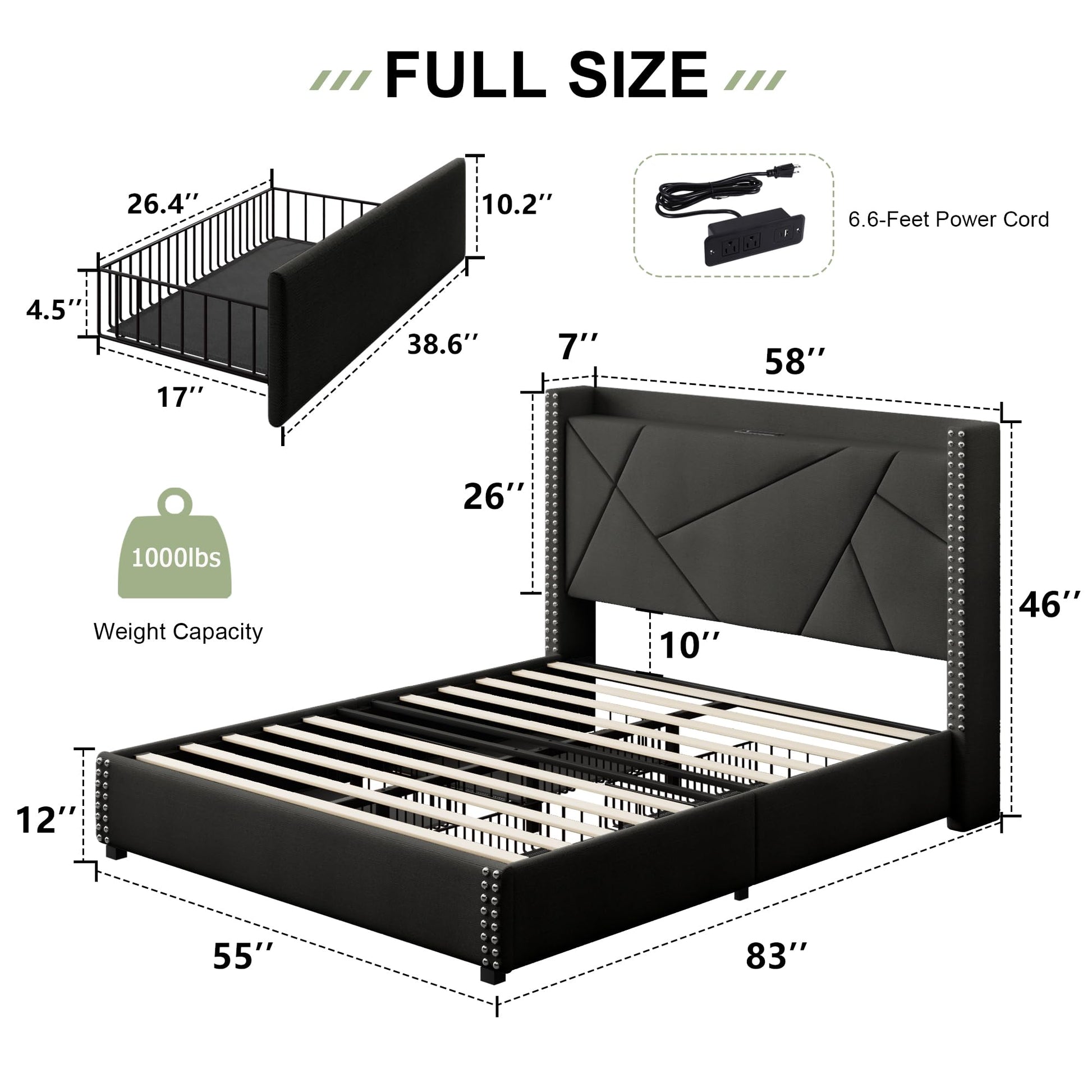 Comfortable Backrest: Full size bed uses soft linen fabric, filled with high-density sponge for a soft and comfortable touch, 26 inches of backrest height makes reading in bed more comfortable