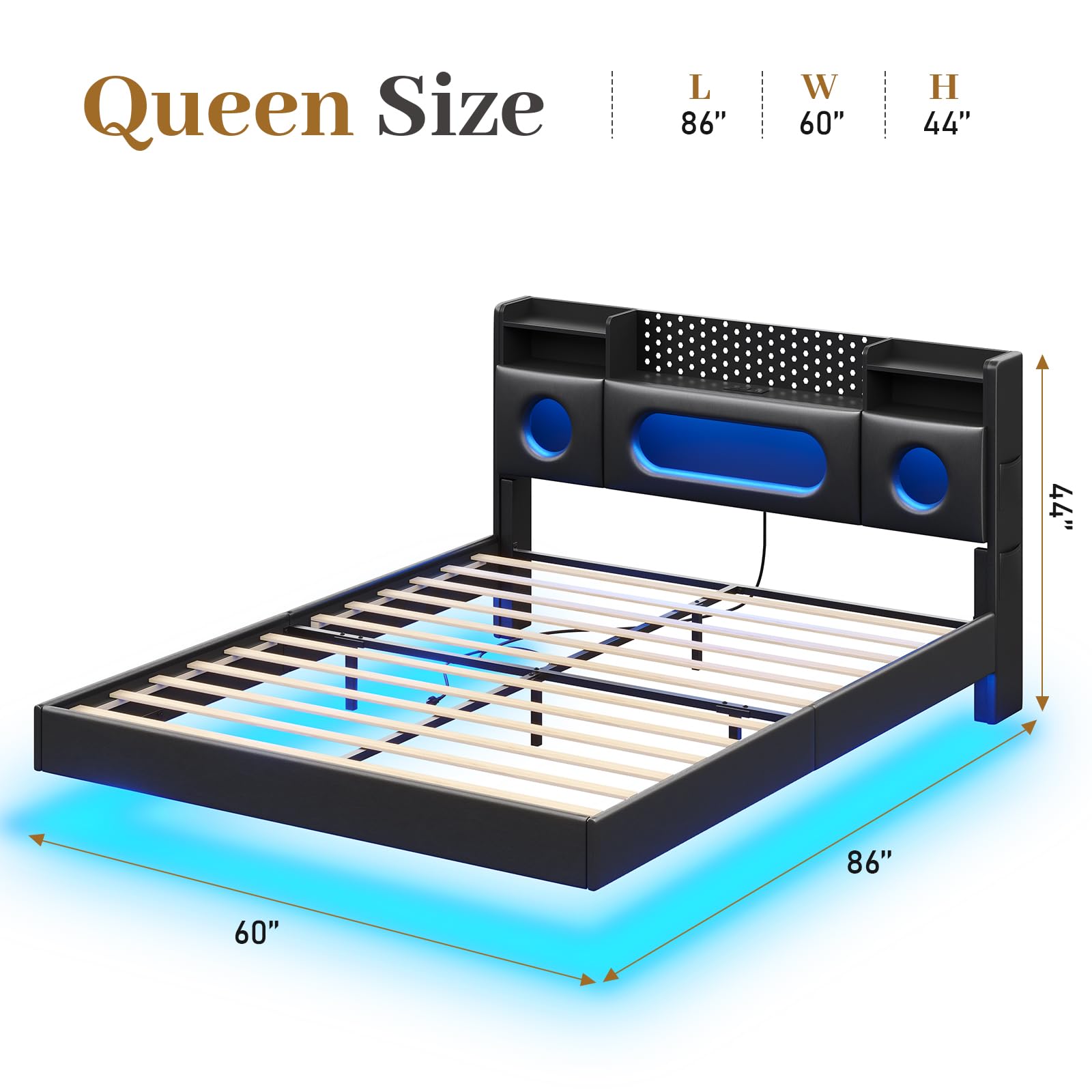Floating Bed Frame Queen Size with Hidden Storage Headboard