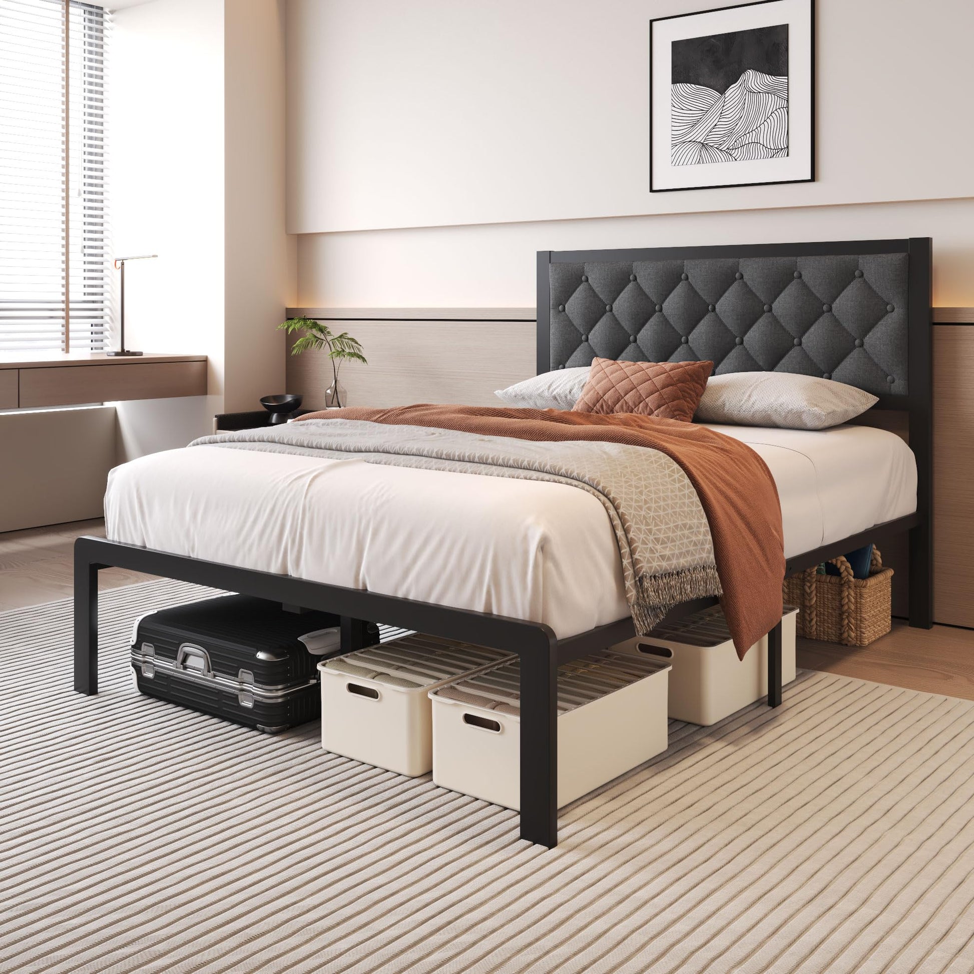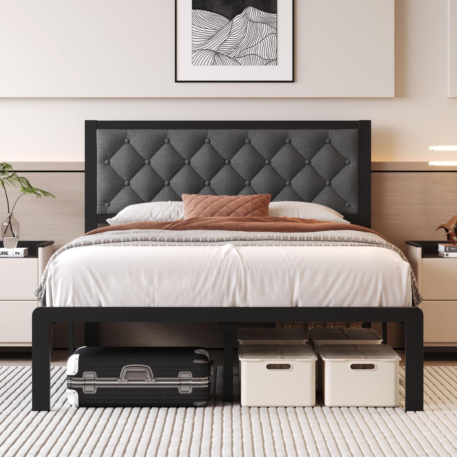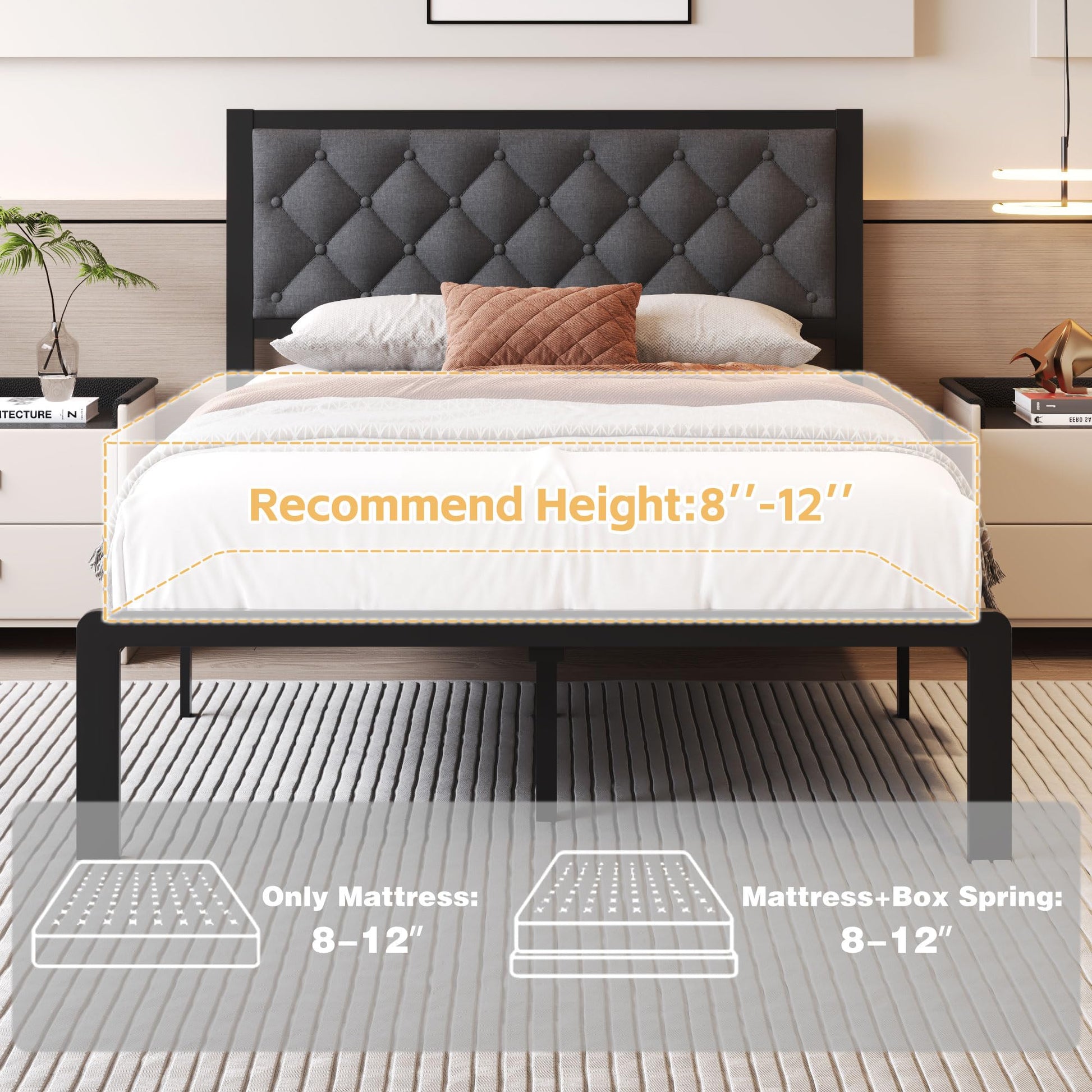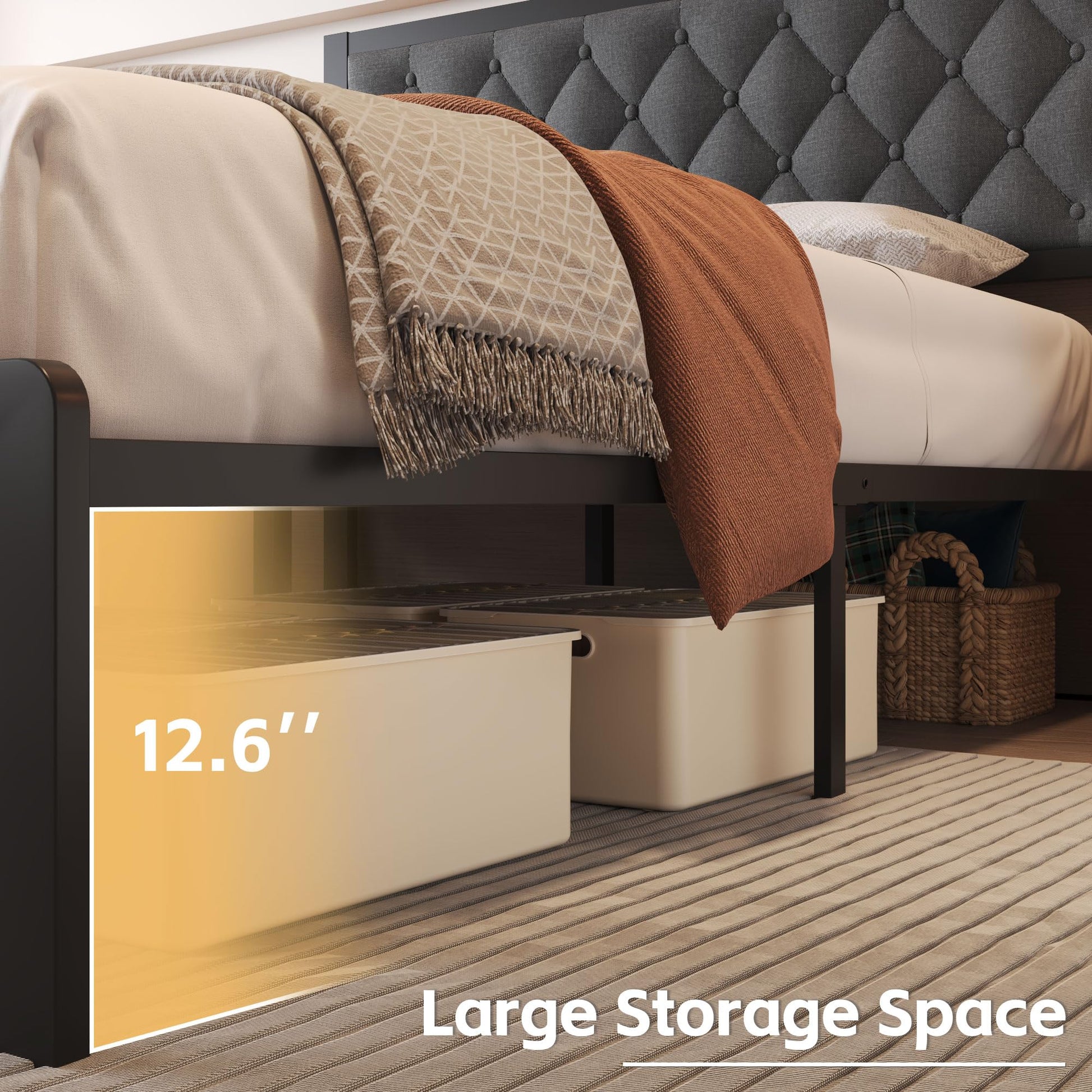 - Under-Bed Storage:The 12.6-inch under bed storage space of this metal bed frame can greatly improve the utilization of bedroom space. allowing you to organize and store more items while making your room look neat and orderly.The oversized space under the bed is also convenient for your cleaning.