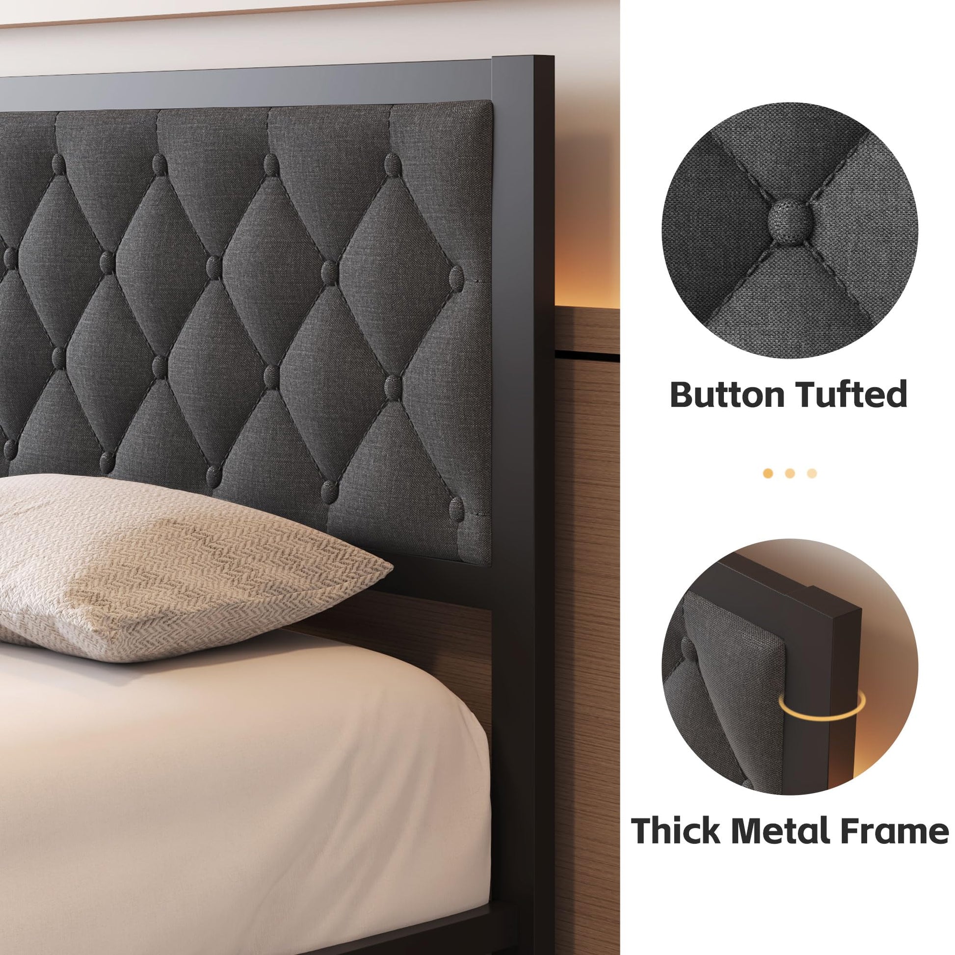 - Upholstered Headboard:The headboard is wrapped in high-quality Linen fabric, filled with High rebound memory sponge.When you lean on the headboard,the soft headboard will provide good support for your back and you will feel very comfortable.