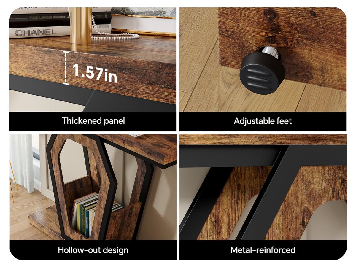 - DETAILED DESIGN: Adjustable leg pads help the entryway table stand stably on uneven floors, so never worry about wobbling. The combination of thickened wooden boards and metal frames exudes industrial charm. making it a truly unique and eye-catching centerpiece in the hallway