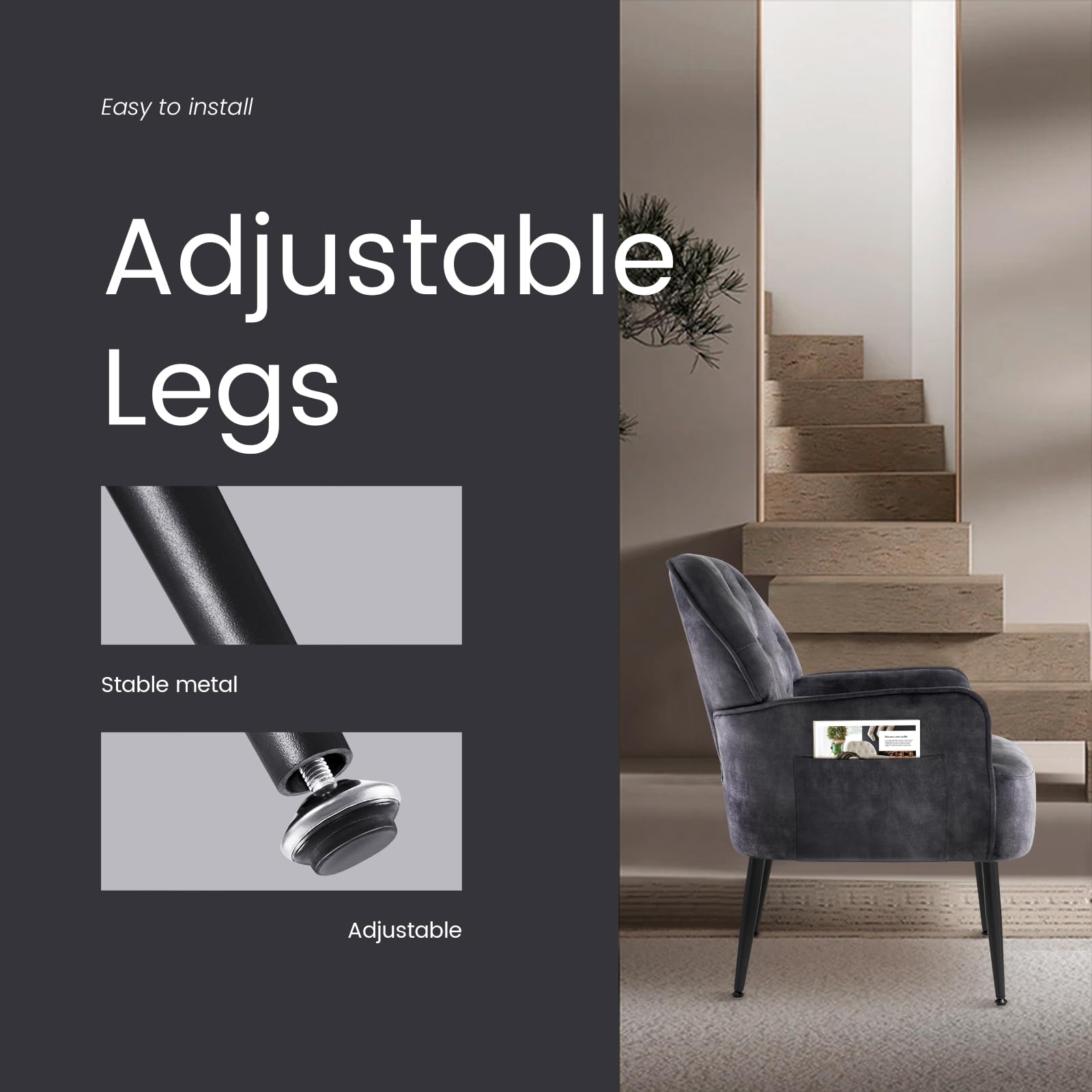 Sturdy and Durable: The upholstered accent chair is supported by four metal legs. The adjustable base feet ensure its balance and stability, with a maximum weight capacity of 350 pounds. The sturdy metal legs and non-slip pads can keep you balanced and stable, protecting your floor from wear and scratches.