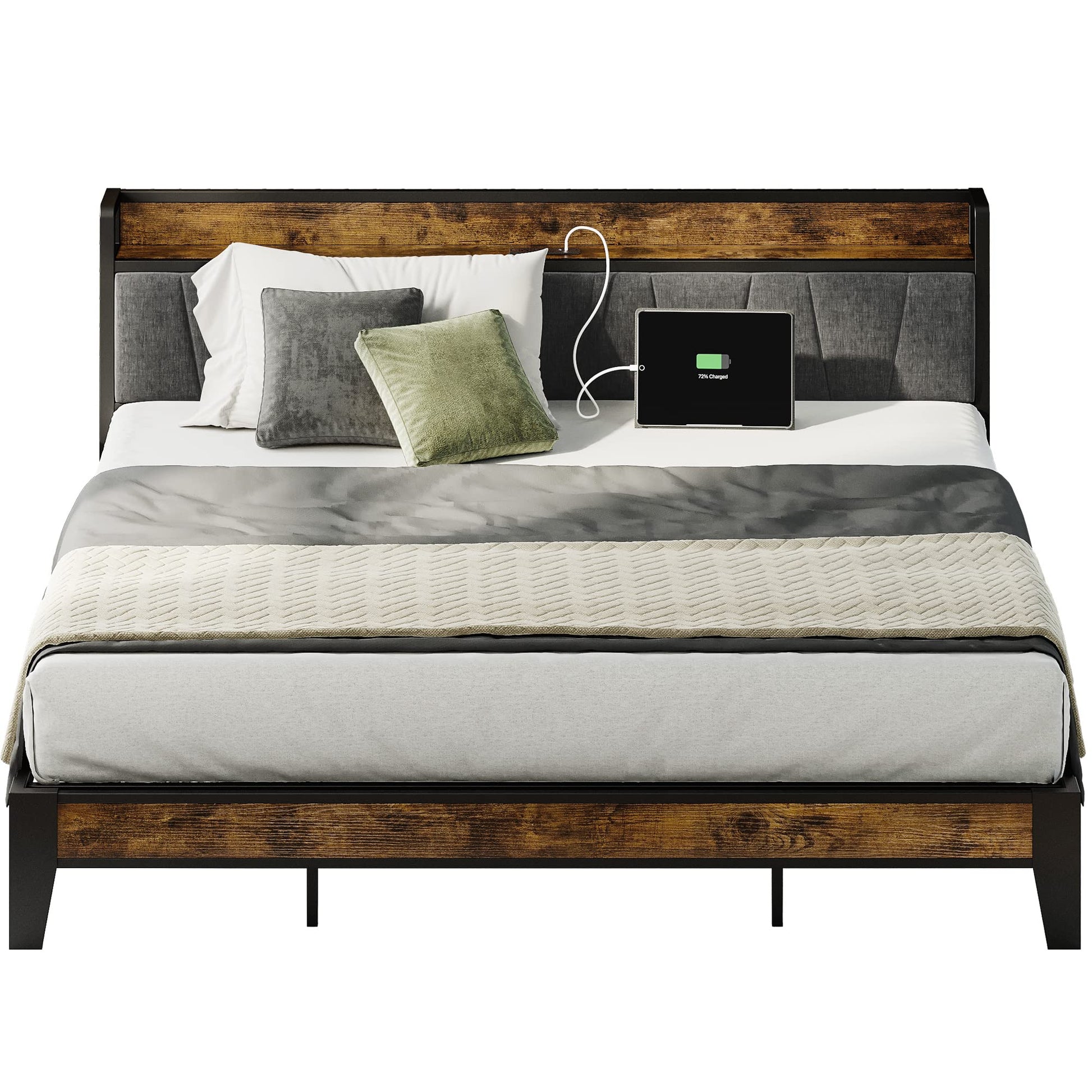 Practical and Comfortable: Vintage shelf and gray Upholstered headboard combine practical and comfortable to match any style of the room. The bed frame made of FSC-Certified wood.