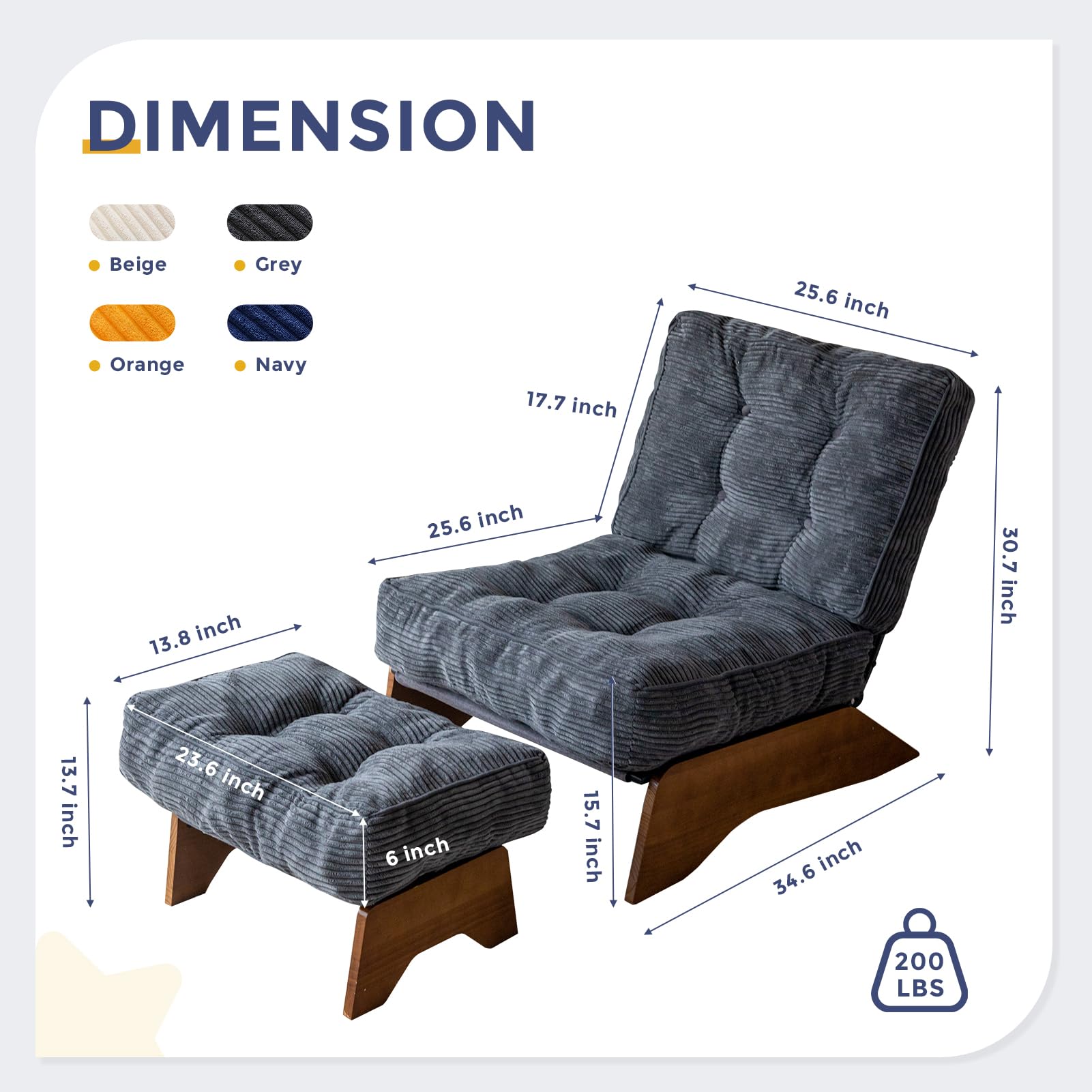 Comfortable & Sturdy: The combination of thick upholstery and a sturdy frame make this chair durable. Soft cushion provides comfort, while the metal and solid wood frame construction provides stability and sturdiness. Accent Chair Dimension: 25.6"W x 25.6"D x 17.7"H, Ottoman Dimension: 23.6"W x 13.8"D