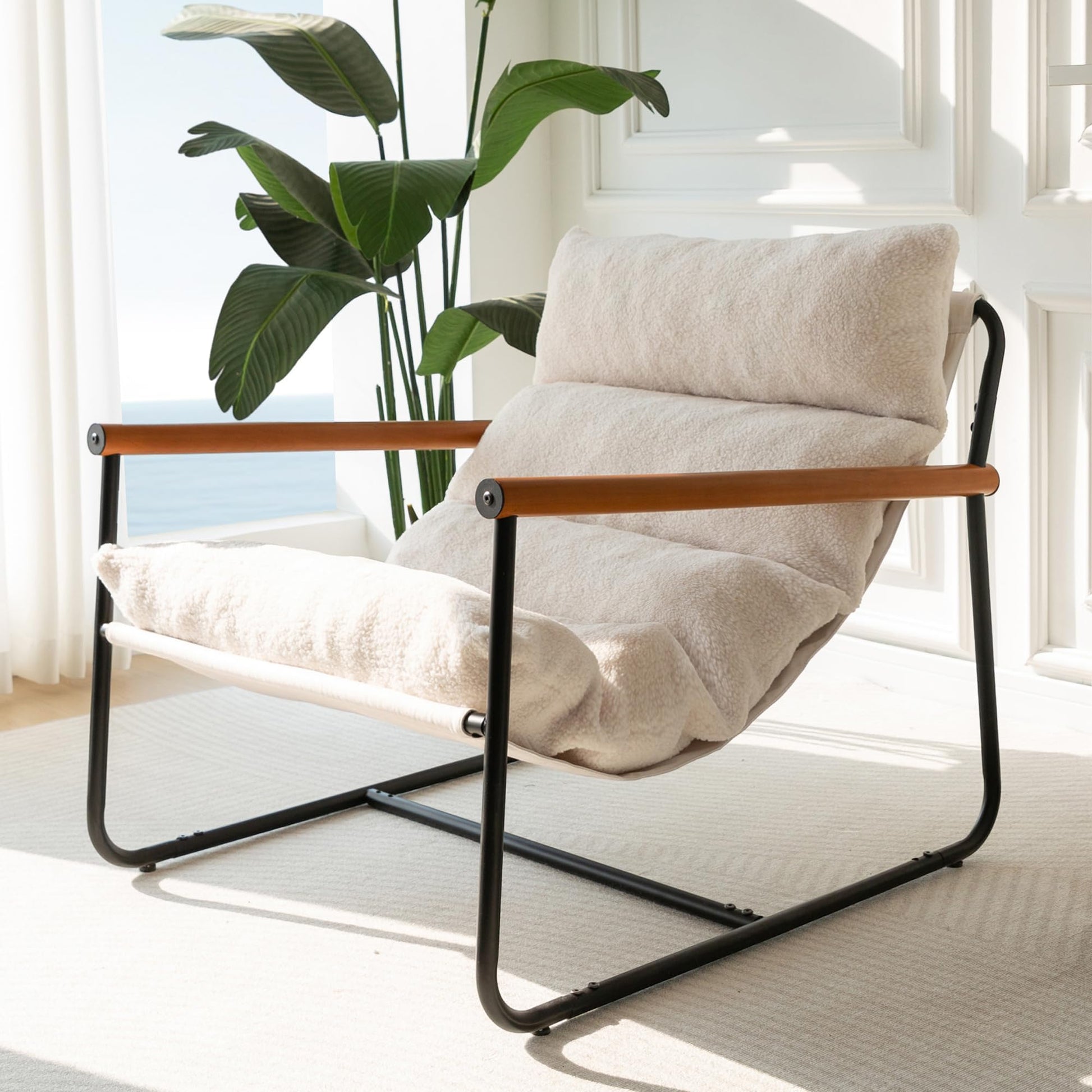 Stylish Design: Covered in fuzzy fabric make this modern accent chair soft and comfortable. Simple lines with clean and neatly cut, combined with steel frame, easily match most home and furniture decor. No matter if it is placed in the living room, bedroom, balcony, porch, or other space.
