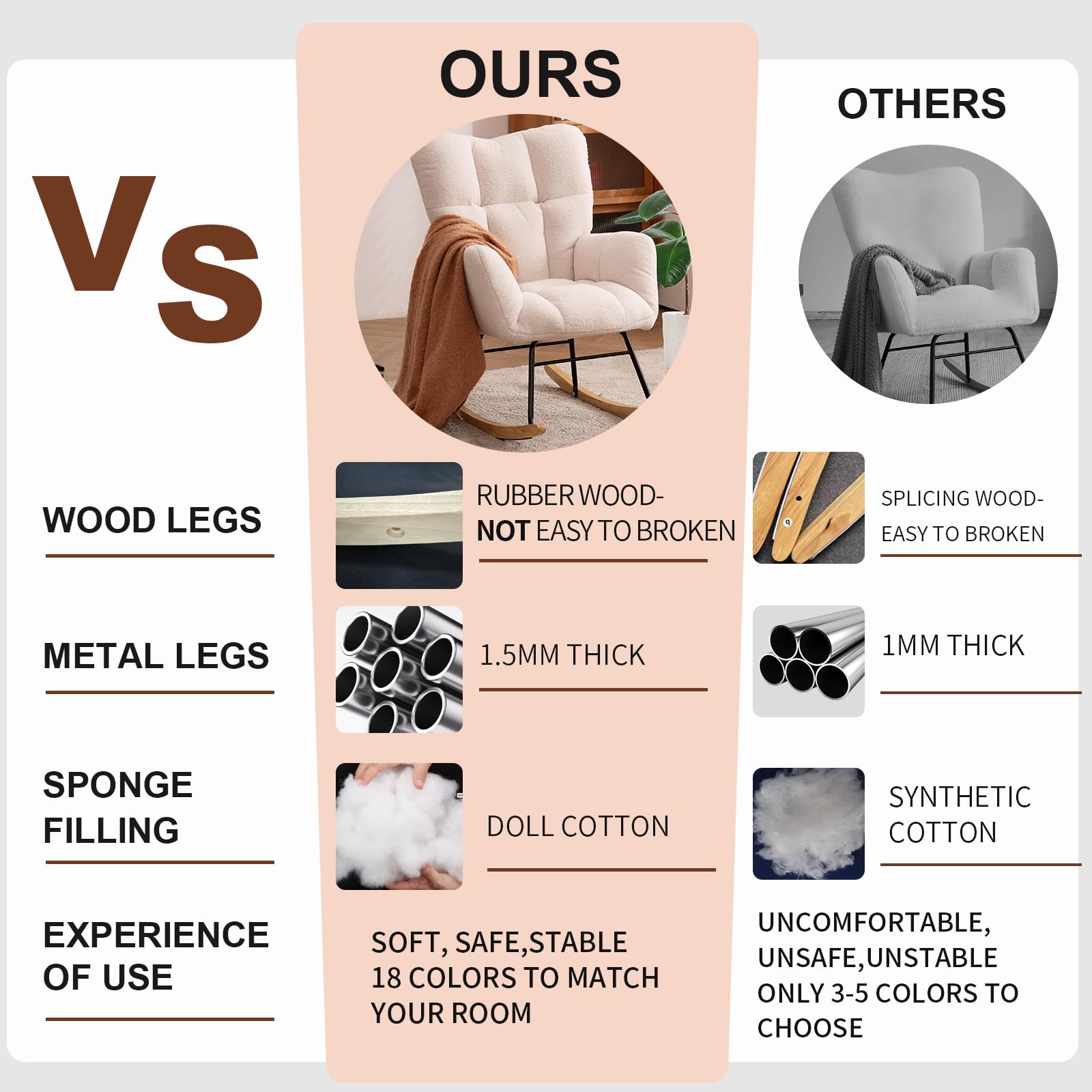 - Soft & Thick Seat: The high back and thick seat cushion are filled with sponge, which is soft, comfortable, elastic and not easy to collapse. The whole recreational rocking chair is soft enough for you to enjoy yourself and relax your body after tired work