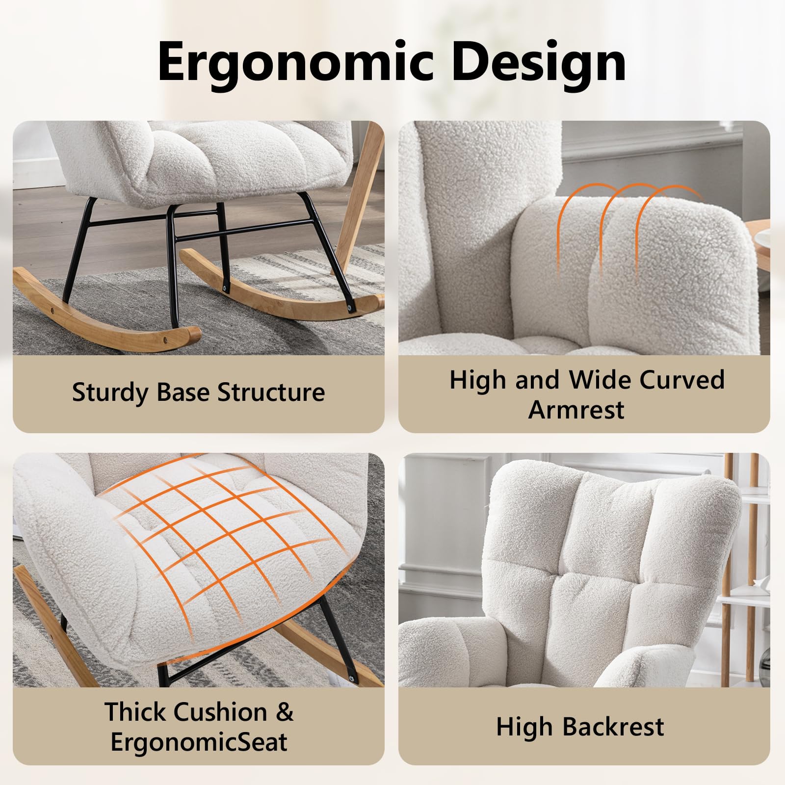 - Ergonomic & Elegant Design: High backrest and armrest provides you with great comfort and safety. Wood color legs can adorn your house. Gently rock your baby to sleep during nap time or read to your little ones in this comfy chair