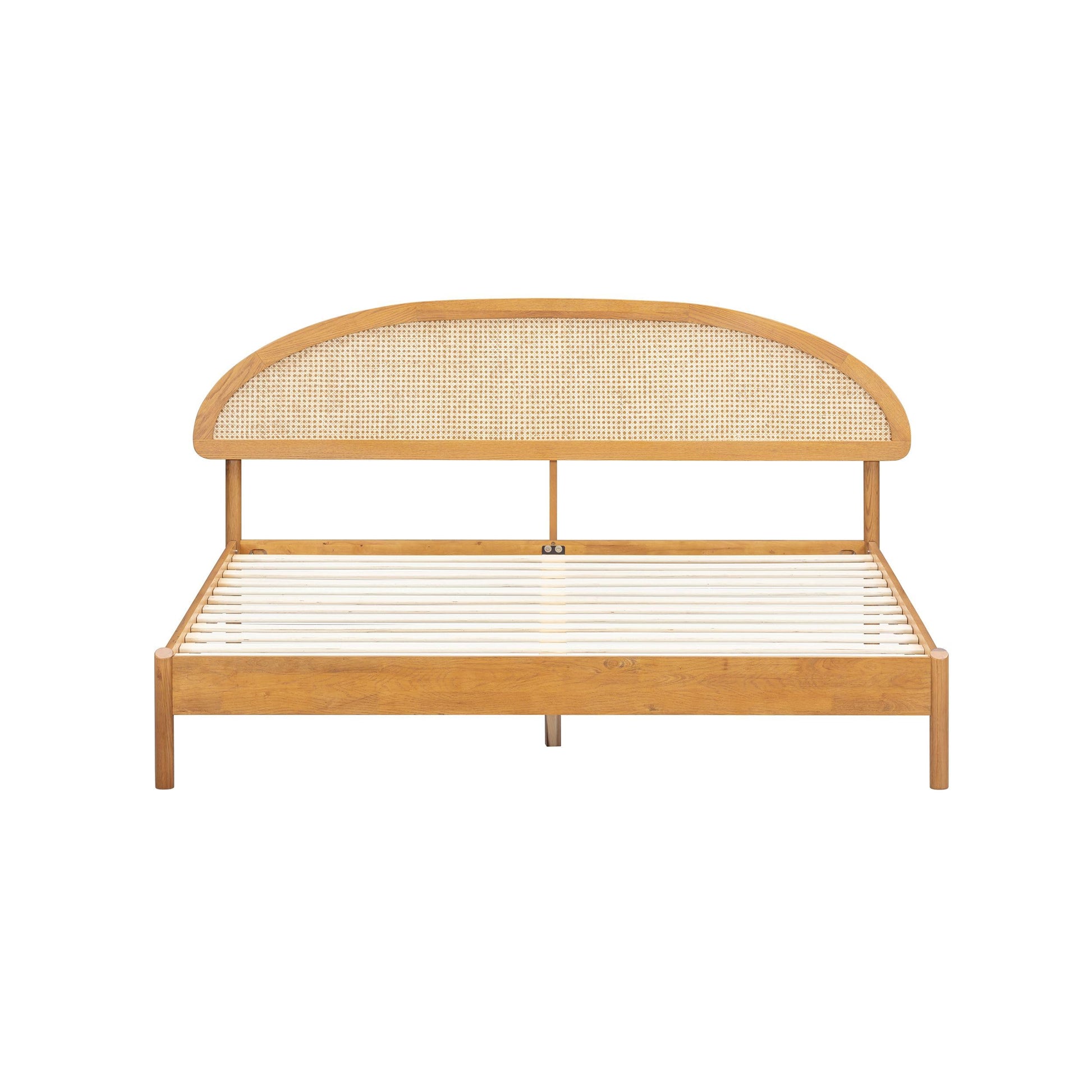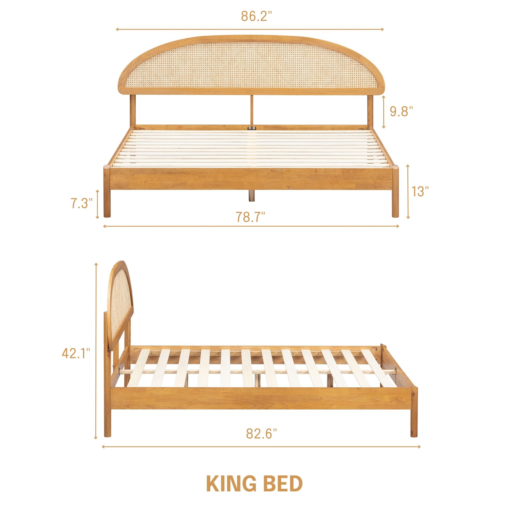 PREMIUM MATERIALS: Crafted from high-quality Oak Wood/Rubber Wood and Natural Rattan, this bedframe exudes elegance and durability, ensuring long-lasting beauty and sturdiness