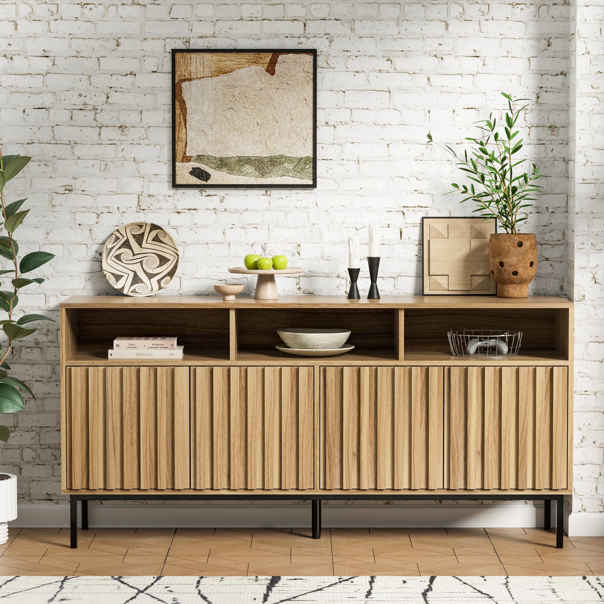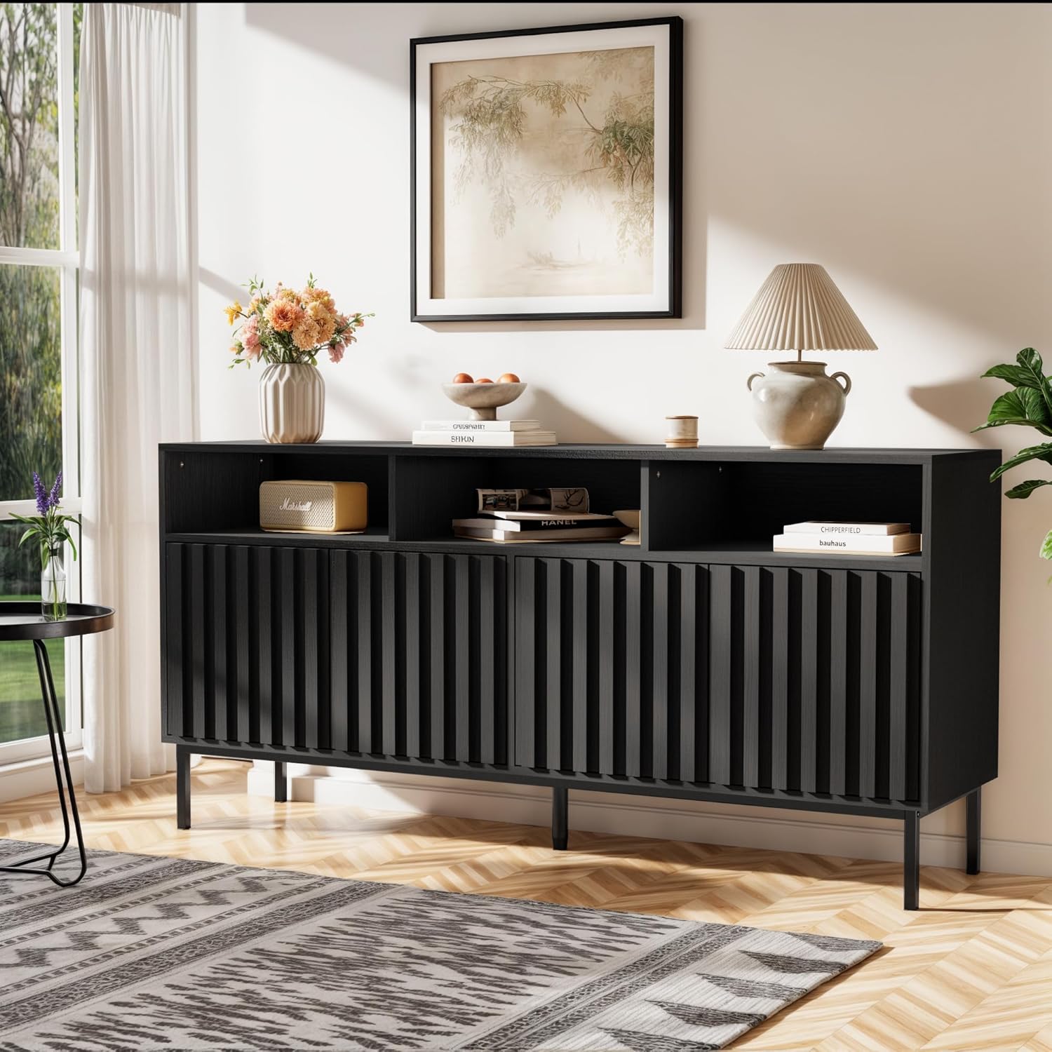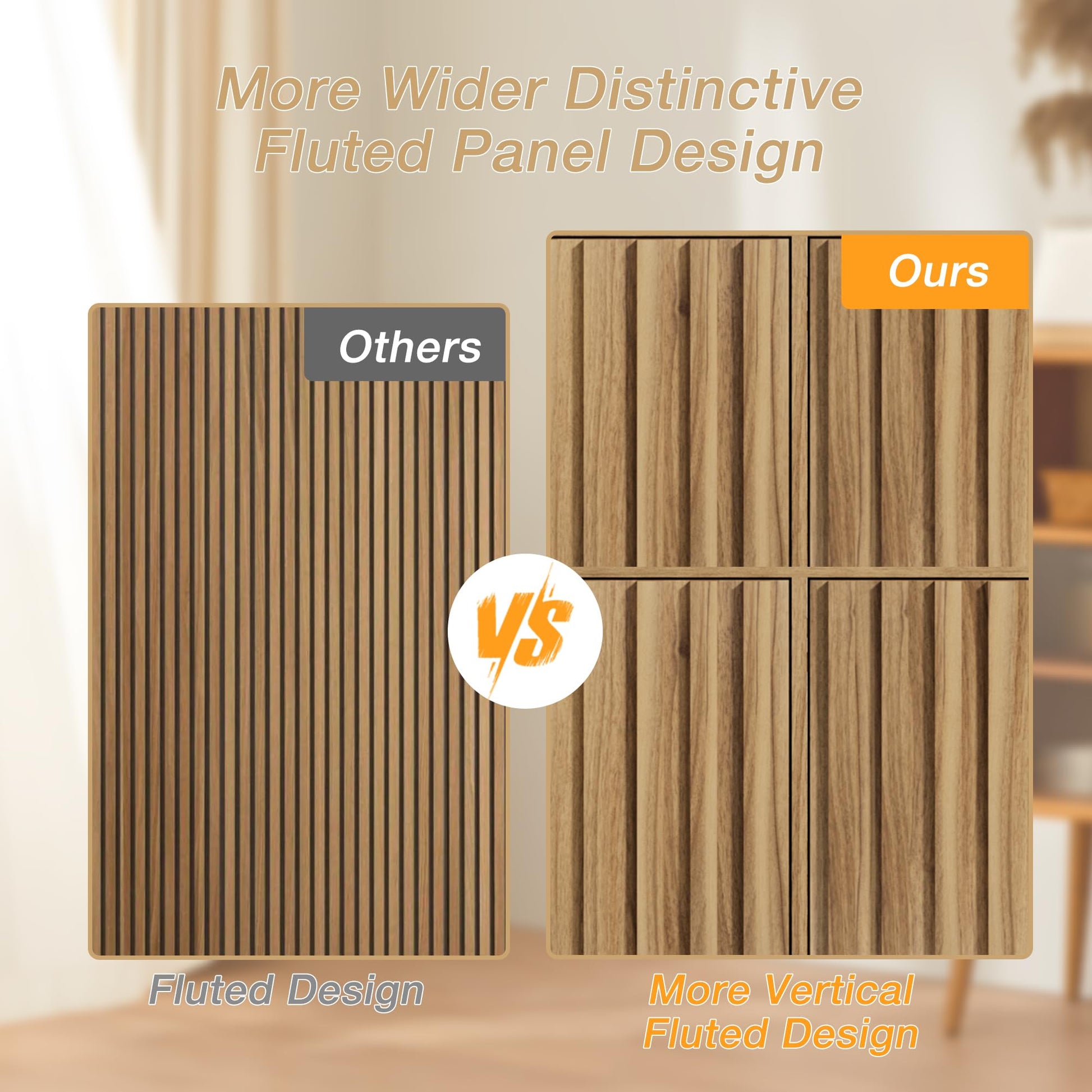 - Fluted Storage Cabinet: Geometric fluted panel design for fluted sideboard buffet cabinet with free handles and stable mental legs,weight capacity makes heavy duty easily