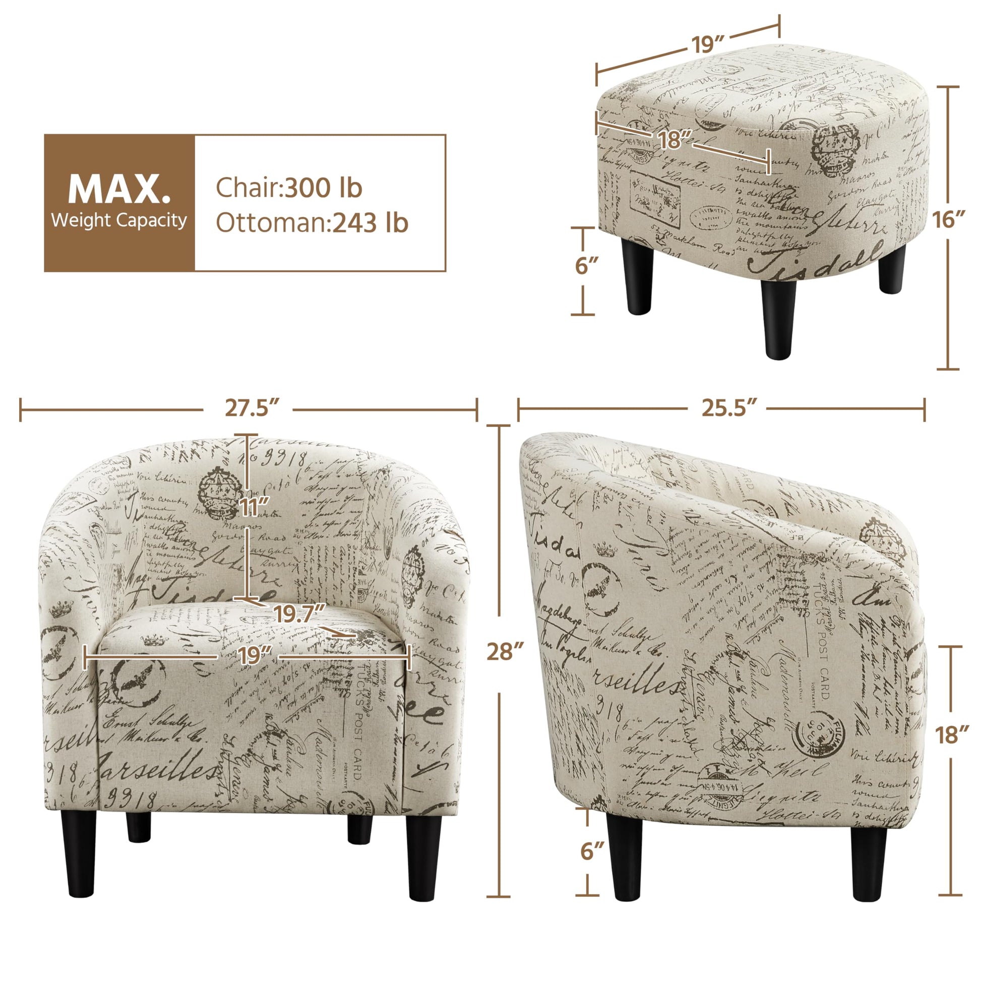 Modern Club Chair with Ottoman, Fabric Accent Armchair with Footstool