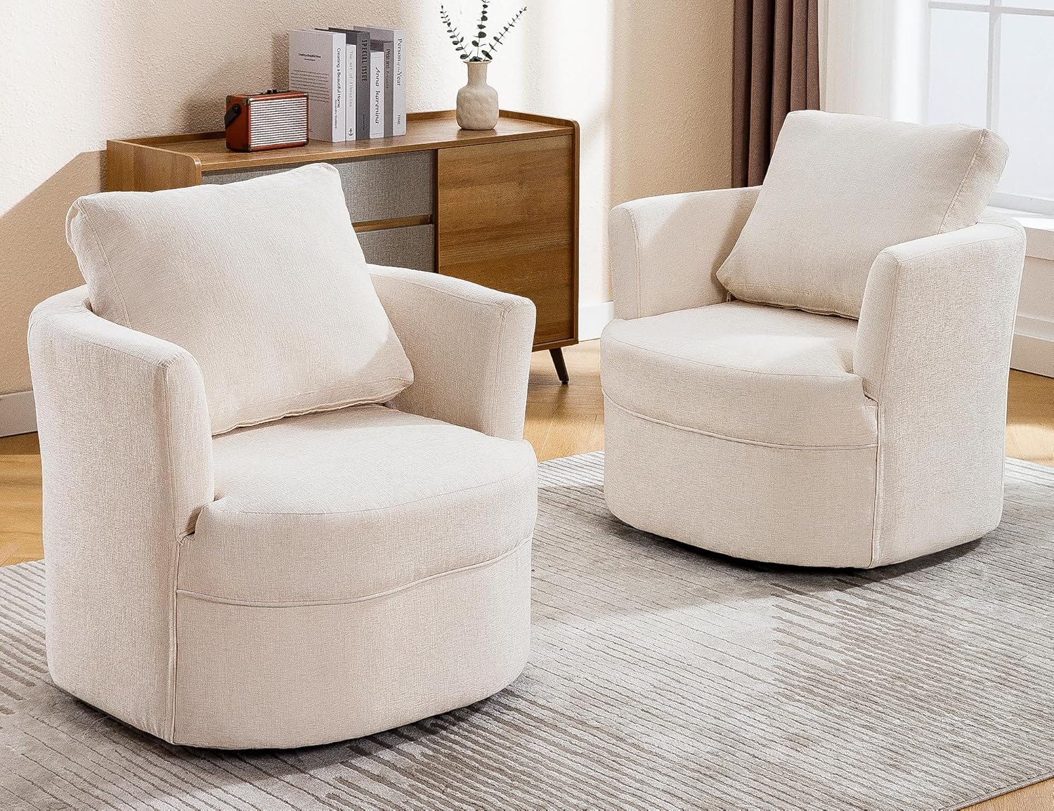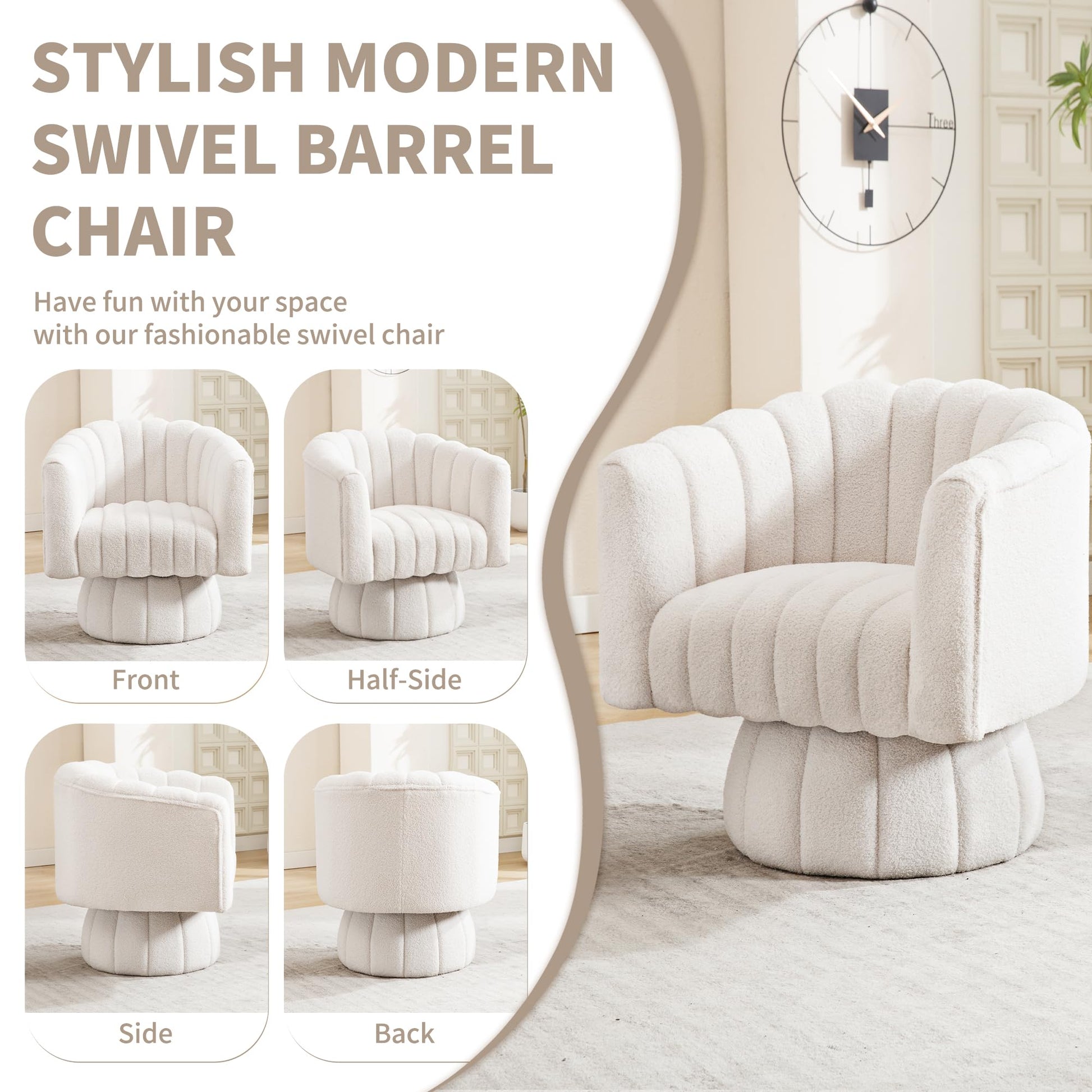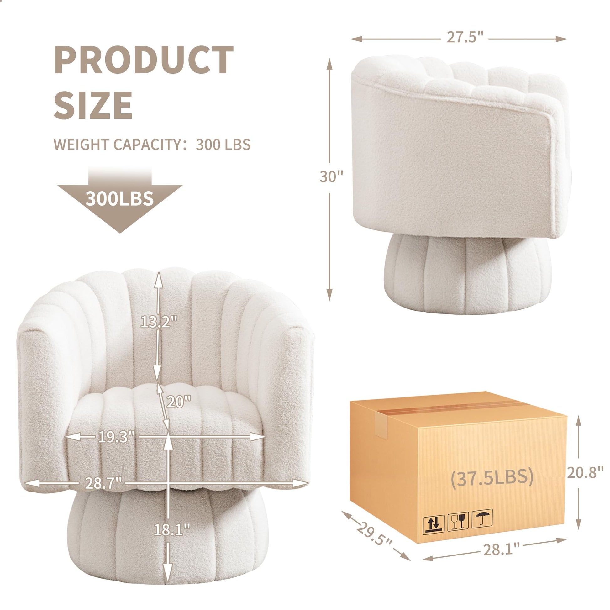 Easy To Assemble: This barrel swivel chair is easy to make and can be assembled in 15 minutes or less according to the included instructions. This swivel armchair overall size: 28.7"W x 27.5"D x 30"H. Weight Capacity:300lbs